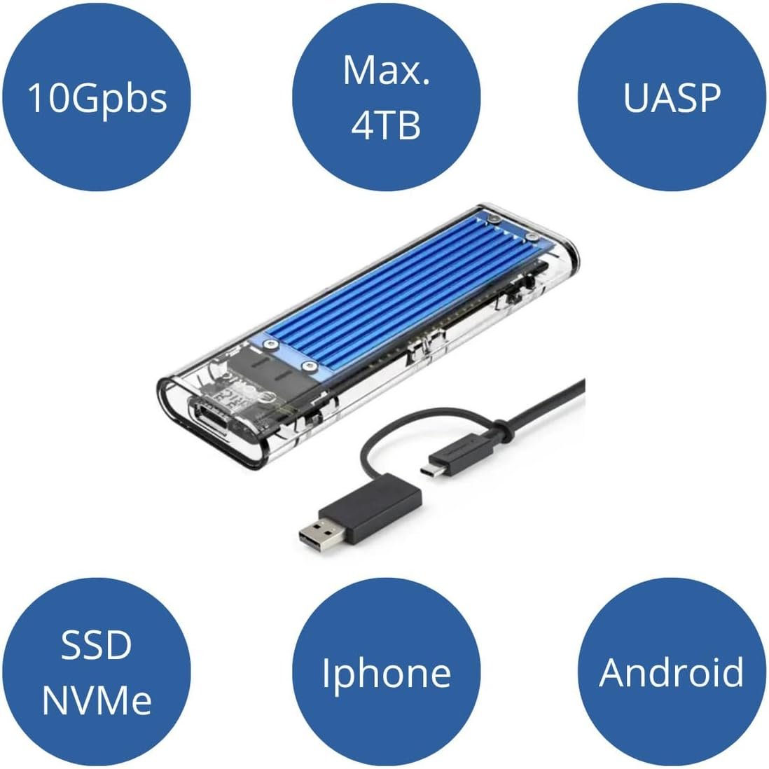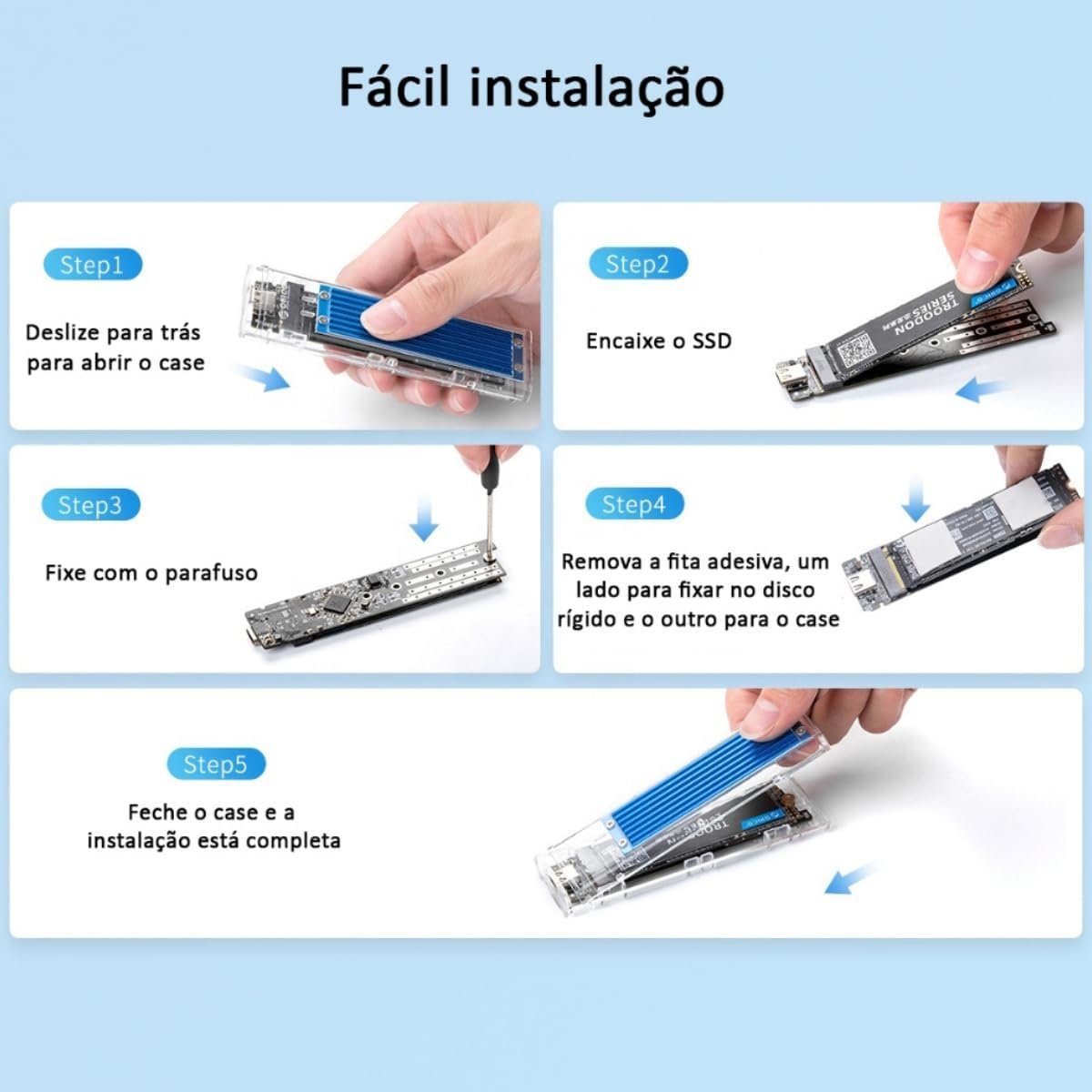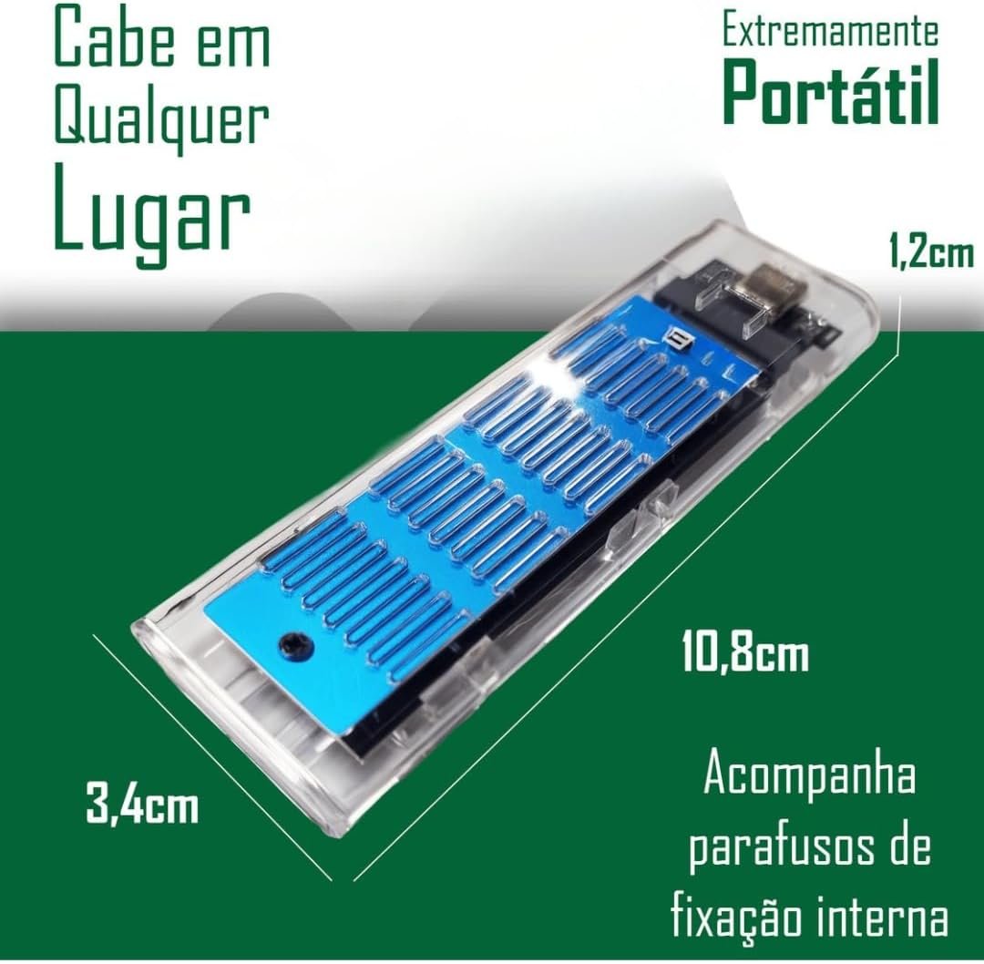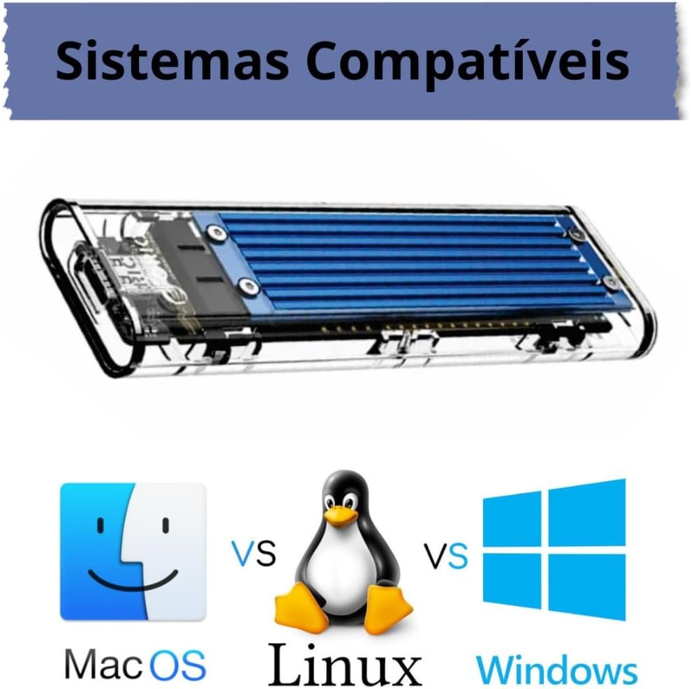Case Externo SSD M.2 NVMe Sata USB 3.1 Tipo-C Velocidade 10Gbps | Compatível Windows, Mac e Linux | Adaptador Gabinete Externo Tamanho 2230/2242/2260/2280 Portátil Premium