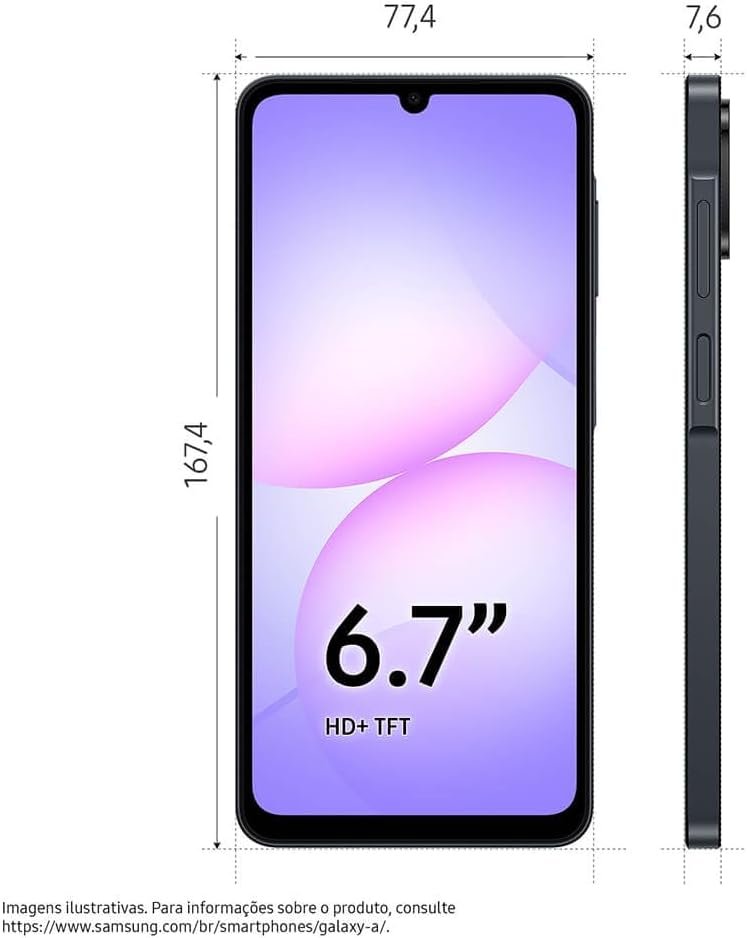 Celular Samsung Galaxy A07 256GB, 8GB, Câm. 50MP, Tela 6.7″ – Preto