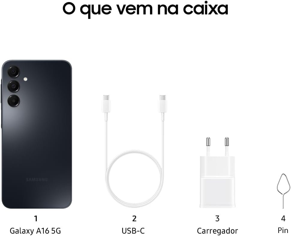 Celular Samsung Galaxy A16, 128GB + 4GB RAM, Câmera de até 50MP, Tela 6.7″, NFC, IP54, Bateria 5000 mAh – Preto