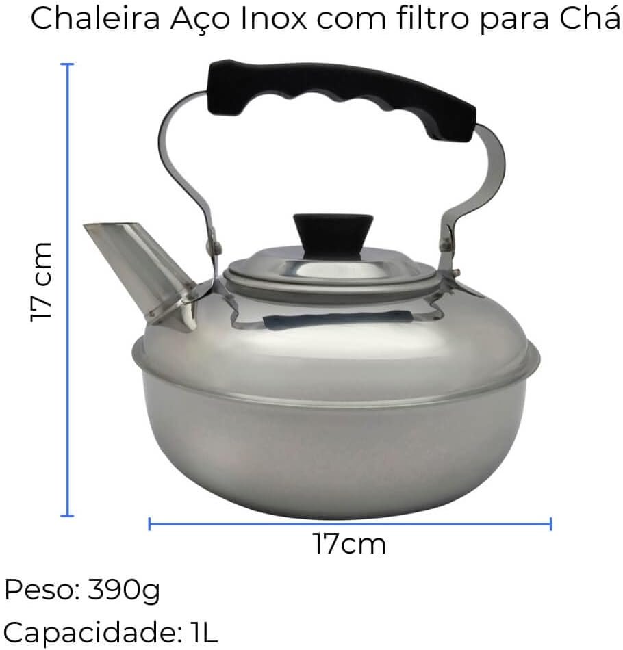 Chaleira Bule Inox 1 Litro com Filtro Infusor Cha EconômicaChaleira Bule Inox 1 Litro com Filtro Infusor Cha Econômica