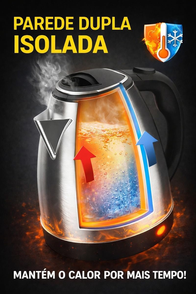 Chaleira Elétrica Inox 1,8L 220V – Ferve Água Rápido Desligamento Automático Proteção Contra Superaquecimento Base 360° Jarra Sem Fio Design Premium