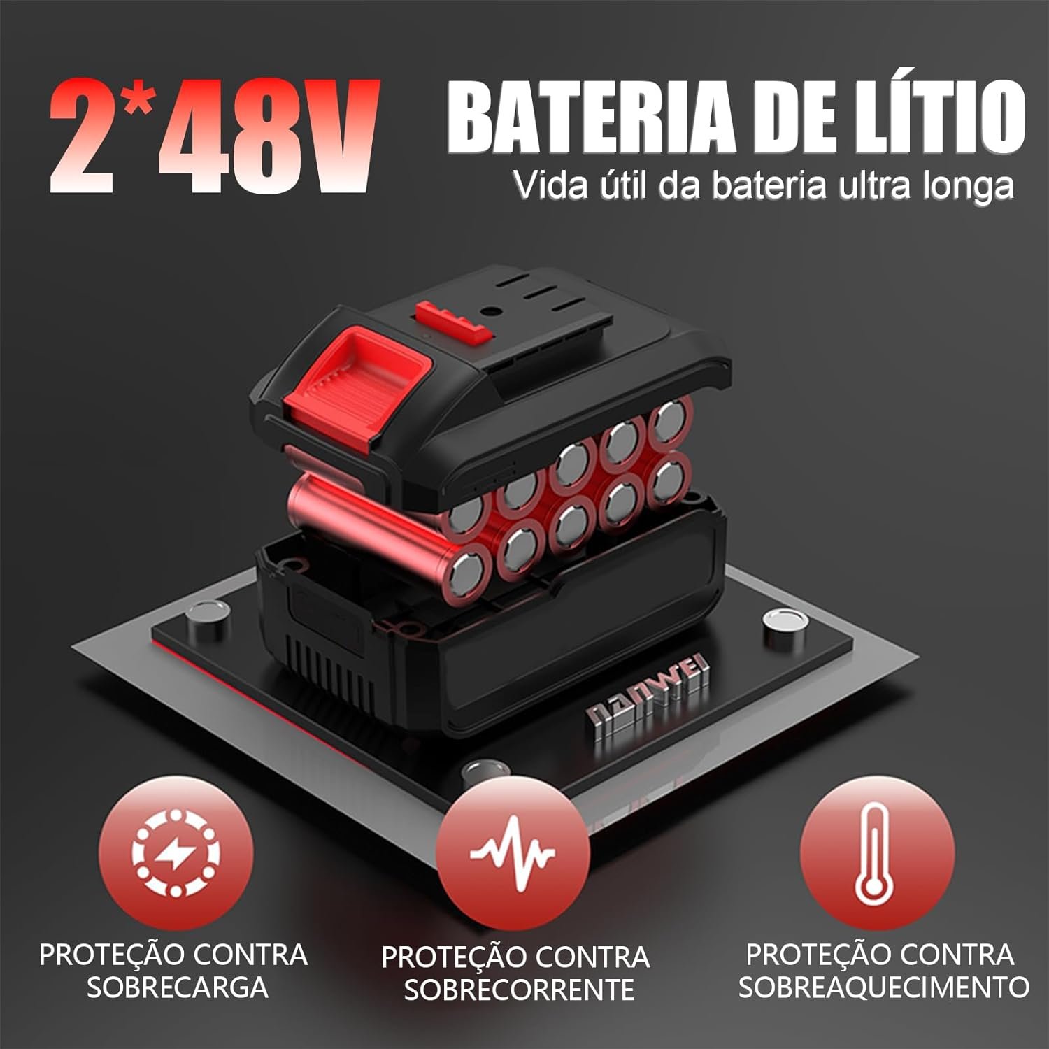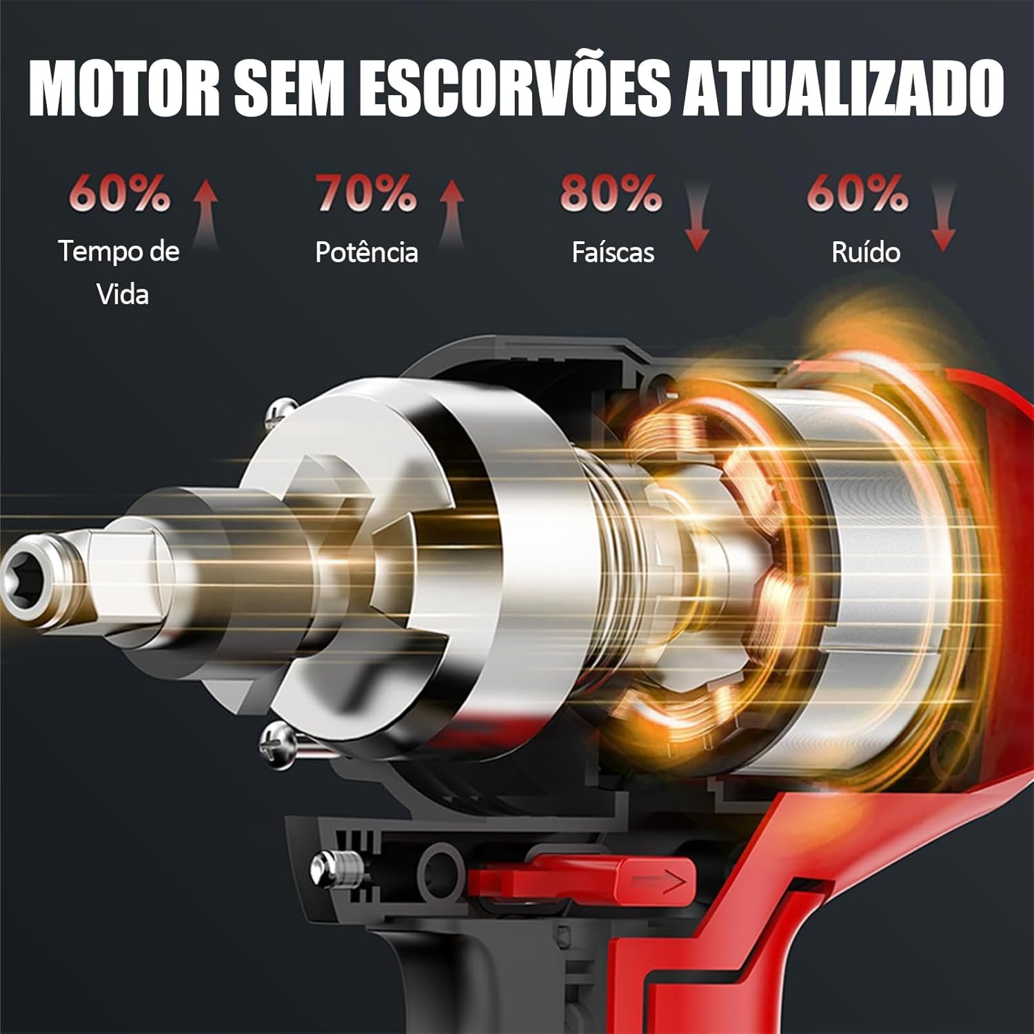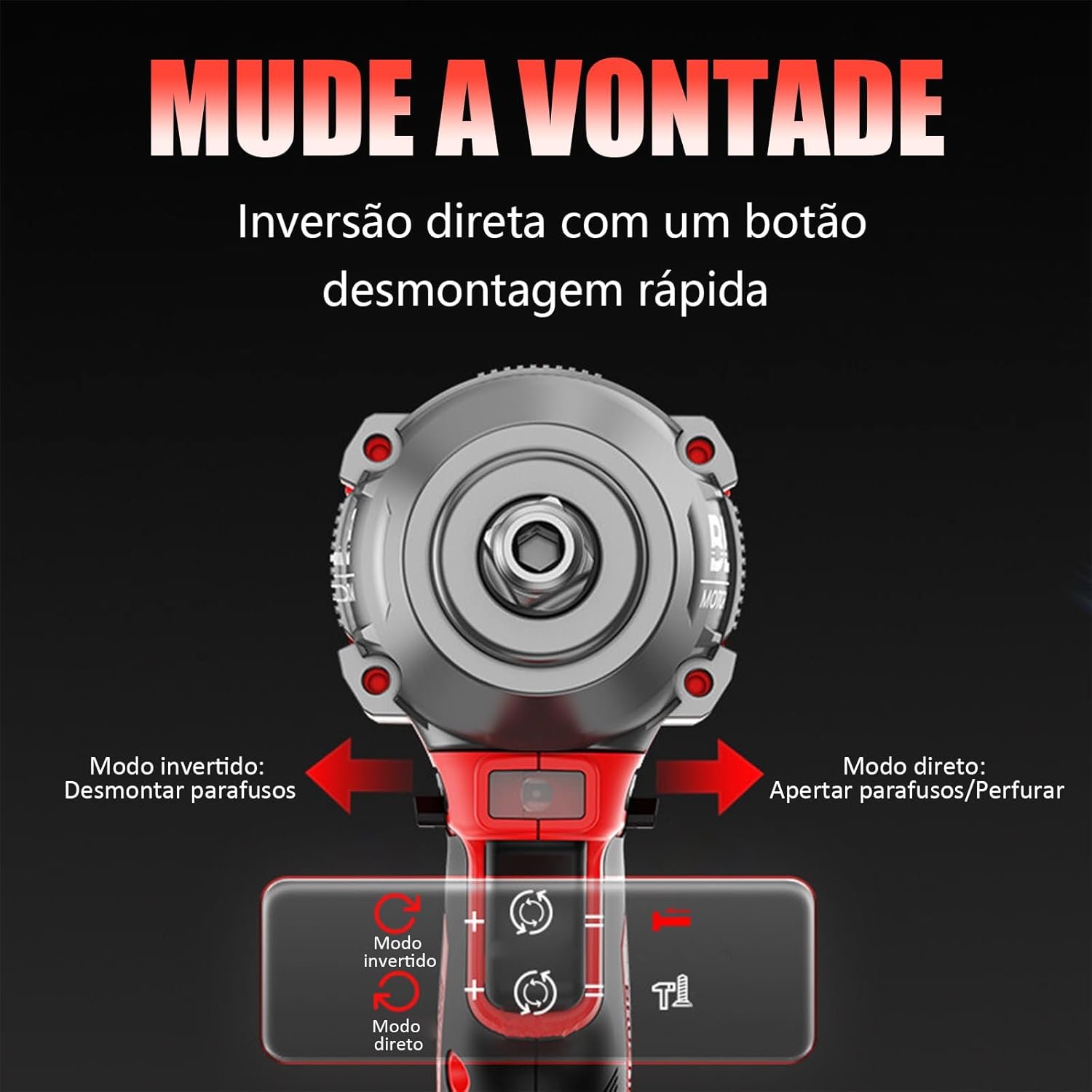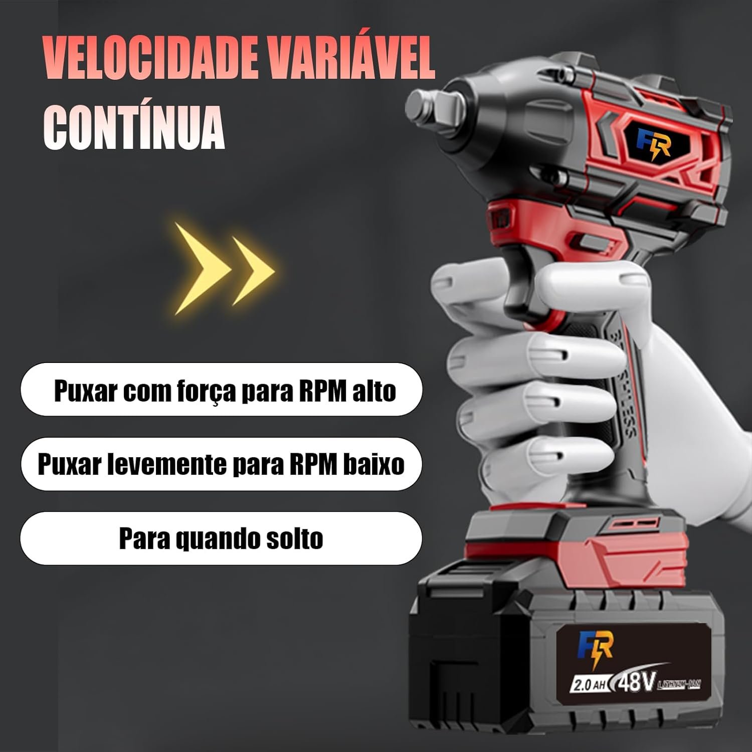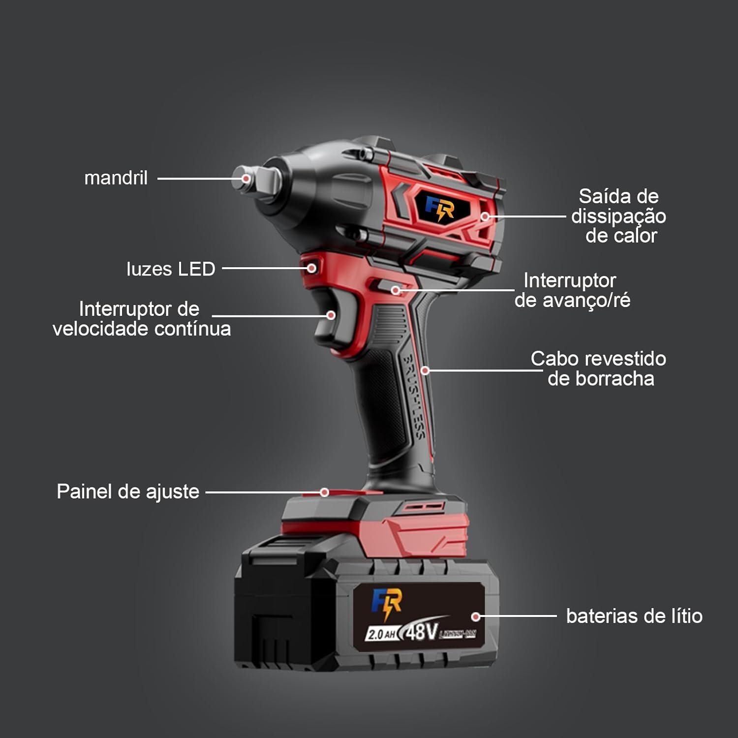 Chave de Impacto e Parafusadeira Sem Fio 48V com 2 Baterias 2.0Ah, Motor Brushless 680NM, Kit Completo para Trabalho Contínuo, Construção e Mecânica
