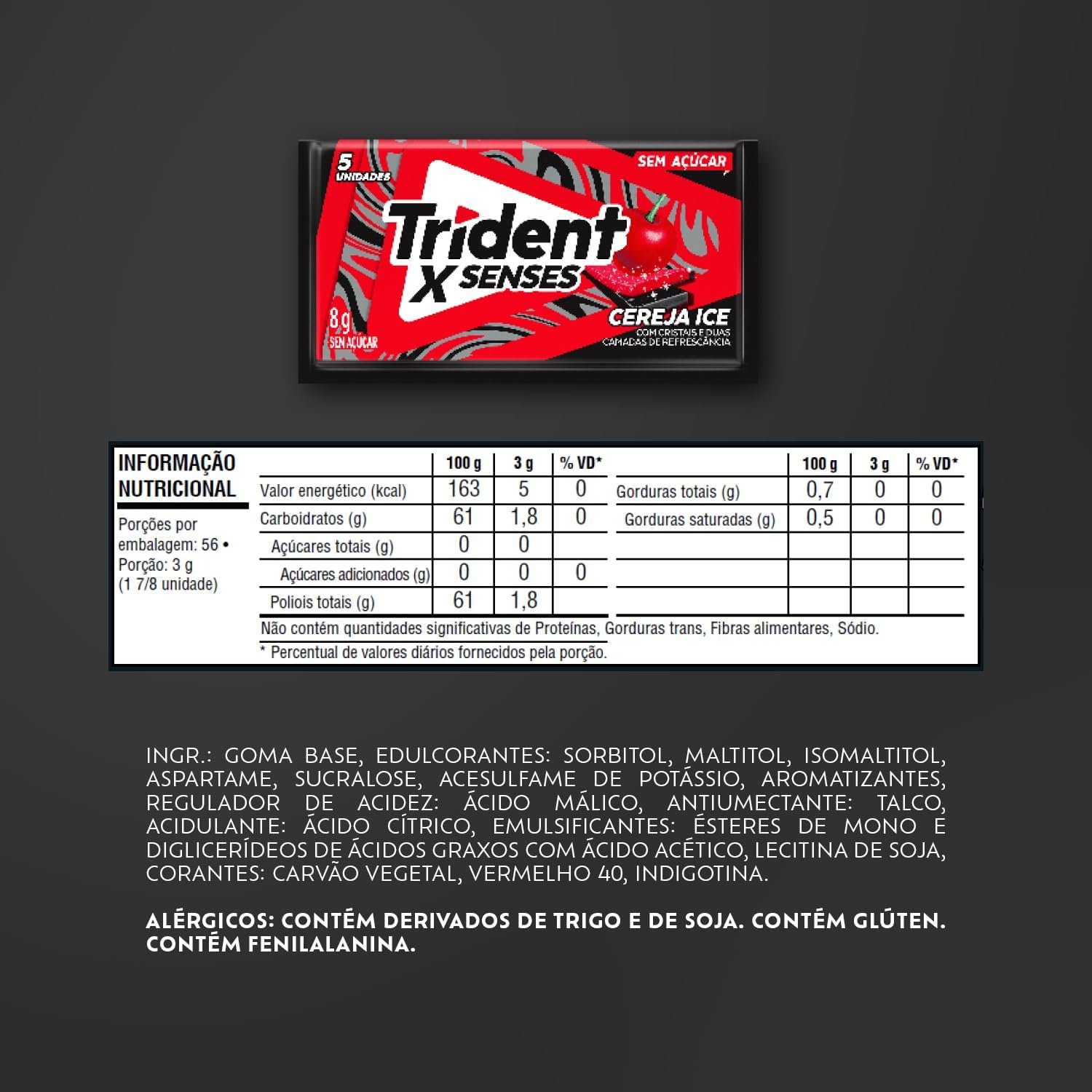 Chiclete Trident XSenses Cereja Sem Açúcar – Caixa com 21 unid. de 8g