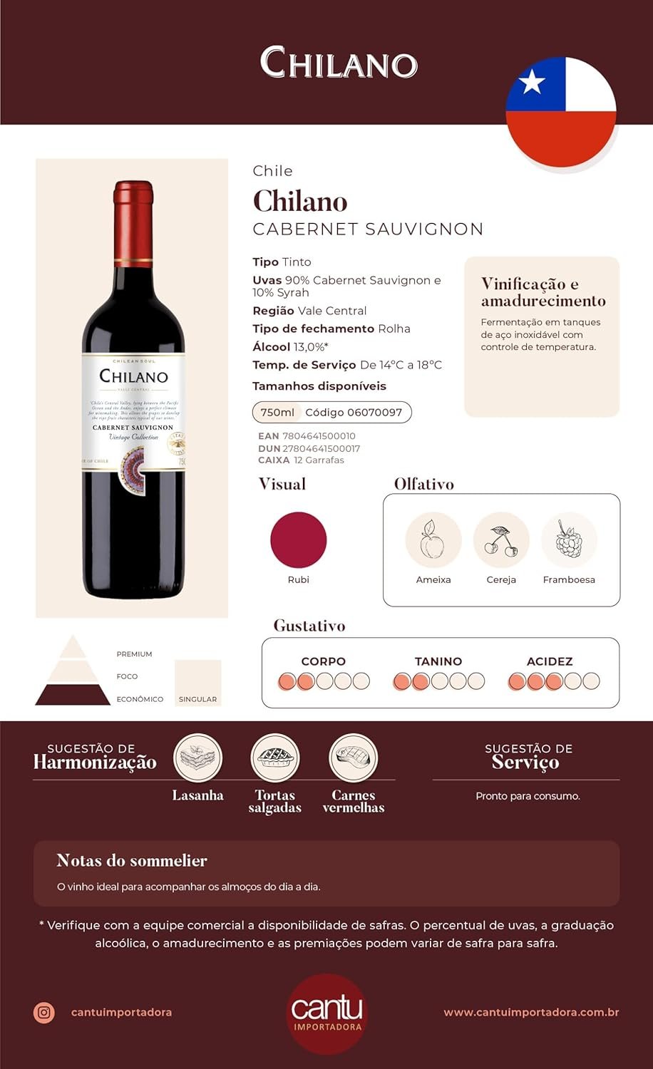Chilano Vinho Chileno Tinto Cabernet Sauvignon 750Ml Fruit