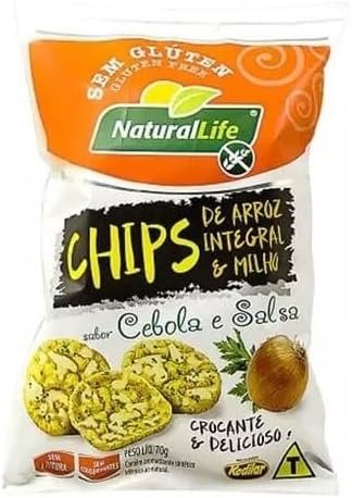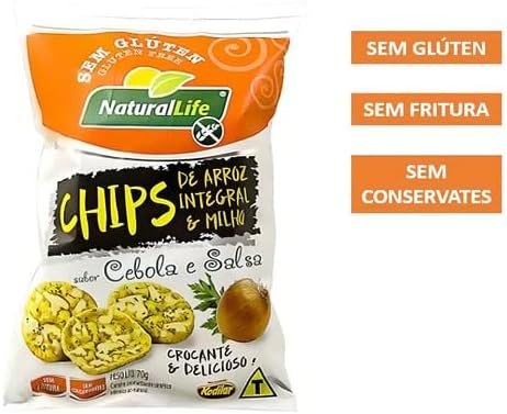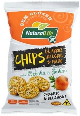 Chips de Arroz Integral e Milho – Sabor Cebola e Salsa – Sem Glúten – Caixa com 12 unidades – Cada unidade pesa 70g – Kodilar