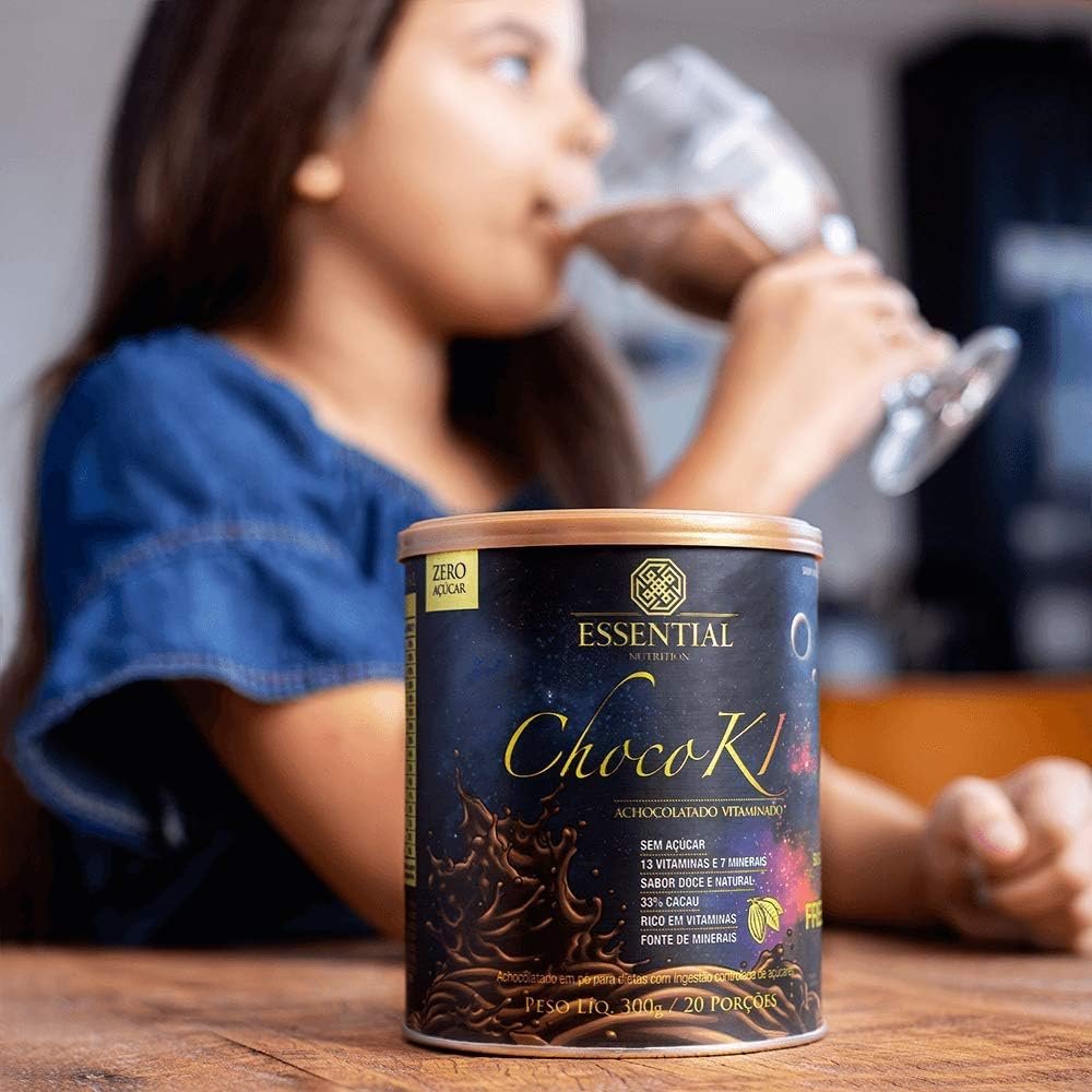 ChocoKi 300g – Essential Nutrition | Achocolatado Premium com Cacau 100% Puro | Sem Açúcar, Sem Lactose, Adoçado com Estévia | Sabor Natural e Saudável