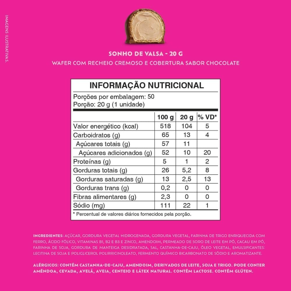 Descrição: Delicie-se com o irresistível Chocolate Sonho de Valsa, feito com os melhores ingredientes para proporcionar uma experiência única de sabor e prazer. Com um pacote de 1kg, você terá muito mais para aproveitar e compartilhar com quem você ama. Aproveite cada pedaço desse delicioso chocolate recheado com castanhas crocantes e um delicioso creme de baunilha. Surpreenda o seu paladar com o Chocolate Sonho de Valsa e torne qualquer momento ainda mais especial.