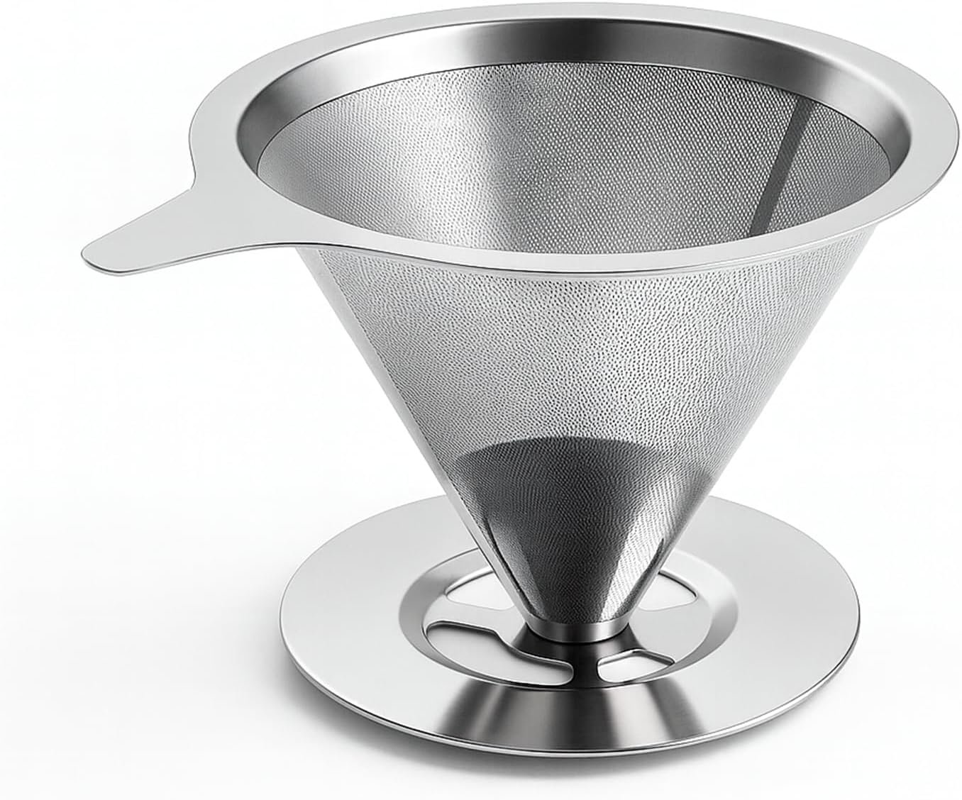 Coador de Cafe Inox Reutilizavel Filtro Permanente 102 com Suporte Integrado, Peneira Fina Dupla Camada, Lavavel e Ecologico, Ideal para Cafa Manual sem Papel, Compativel com Xicaras e Garrafas