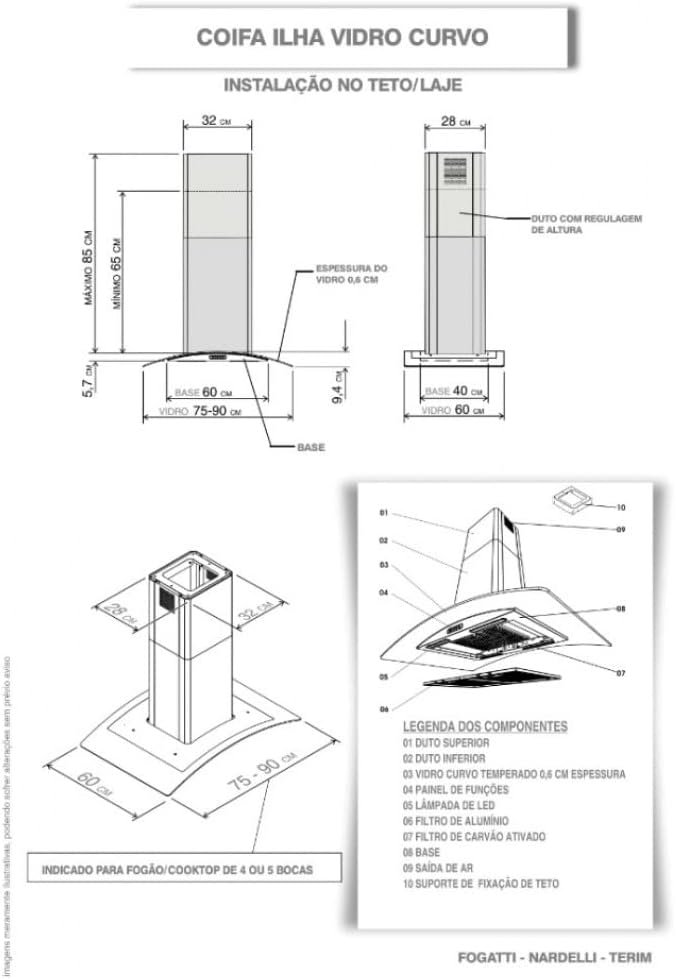 Seja o primeiro a avaliar “Coifa Ilha 90cm Vidro Curvo Nardelli Inox”
