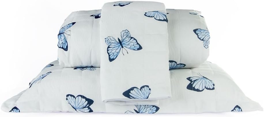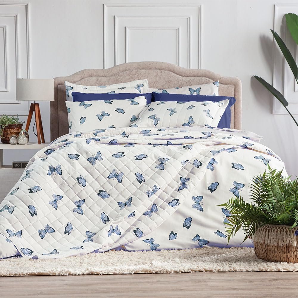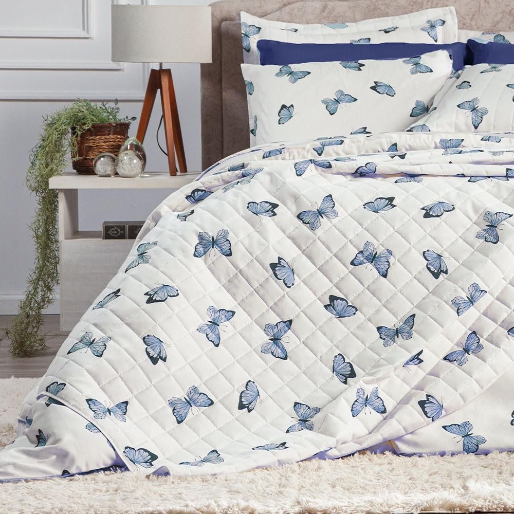 Colcha Cobre Leito Casal Queen 3 Peças Essencialle Algodão Misto (3-BORBOLETAS AZUIS)