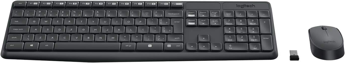 Combo Teclado e Mouse sem fio Logitech MK235 com Conexão USB, Pilhas Inclusas e Layout ABNT2