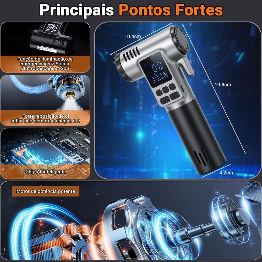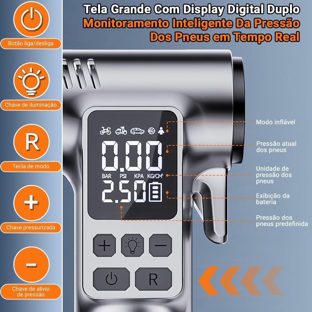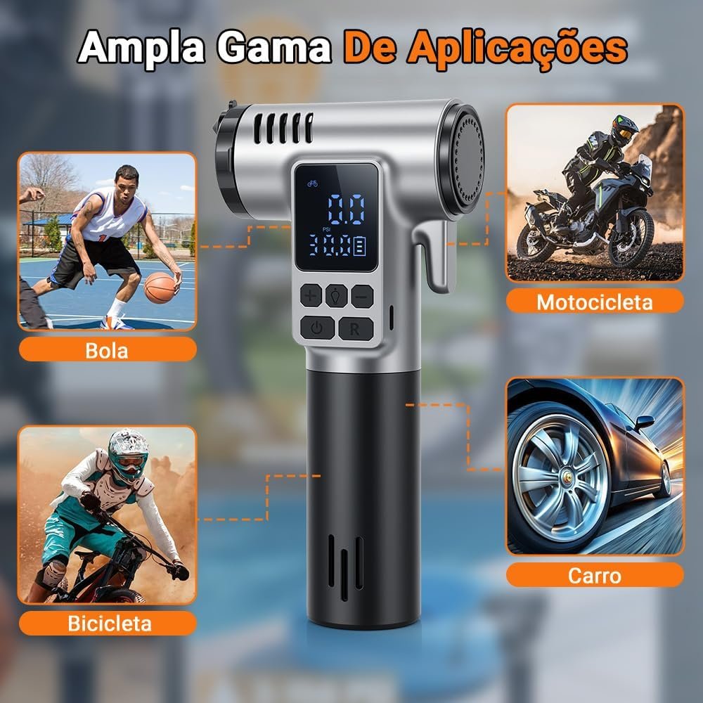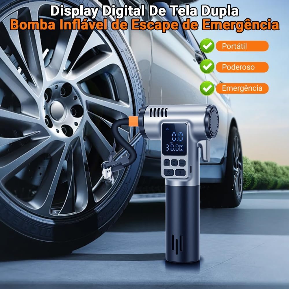 Compressor de Ar Portatil, Calibrador de Pneus, Compressor de Ar Portatil Automotivo, Ar Portatil Automotivo, Bomba de Encher Pneu, Bomba de Encher Bola