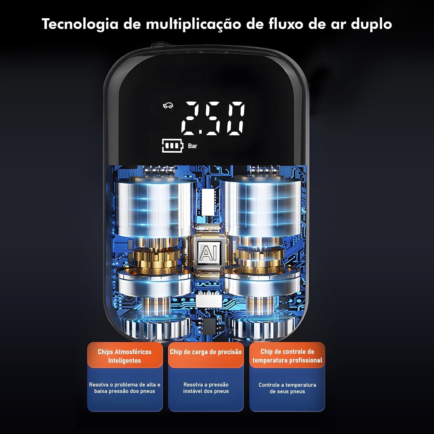 Compressor de Ar Portátil 3 em 1: Calibrador de Pneus e Bomba de Encher