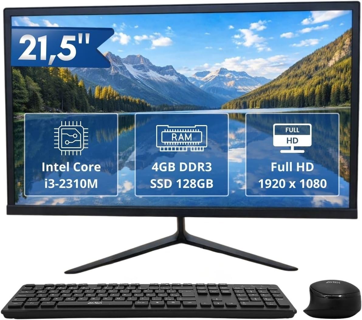 Computador All-in-One 21,5″ Intel i3 2310M 4GB RAM SSD 128GB Completo com Teclado e Mouse Sem Fio, Full HD, Wi-Fi, Bluetooth, HDMI, para Home Office, Estudo e Escritório