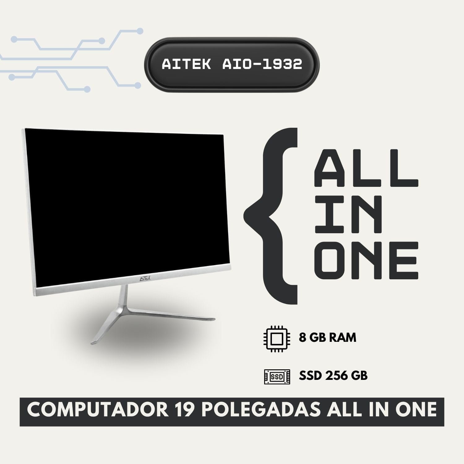 Computador All IN ONE 256GB INTEL I5 3ª Geração 8GB RAM 19 Polegadas 1080p Tela LCD Full HD LED Auto-Falantes Integrado – Aitek AIO-1932