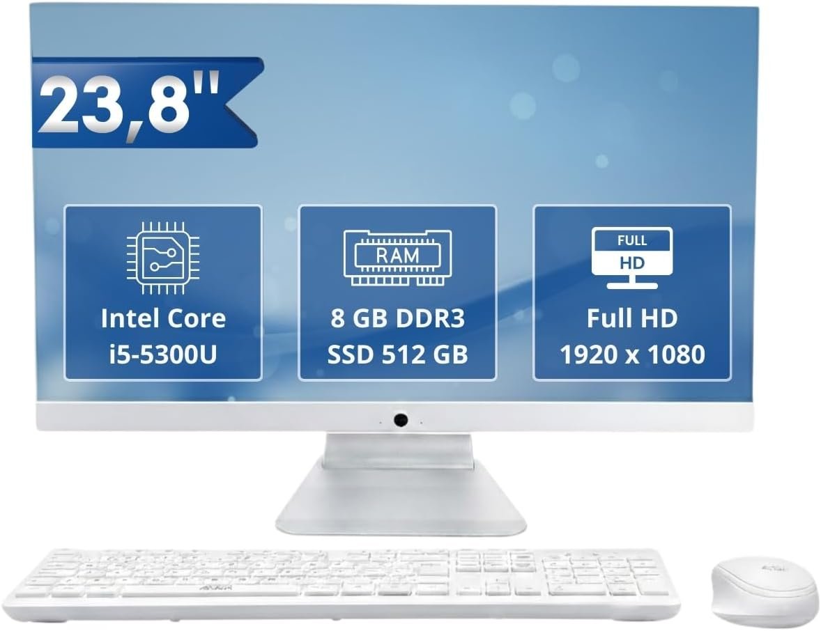 Computador All in One Grasep 23,8″ Full HD Intel Core i5-5300U, 8GB RAM, SSD 512GB M.2, com Teclado e Mouse Webcam e Microfone IntegradoComputador All in One Grasep 23,8″ Full HD Intel Core i5-5300U, 8GB RAM, SSD 512GB M.2, com Teclado e Mouse Webcam e Microfone Integrado