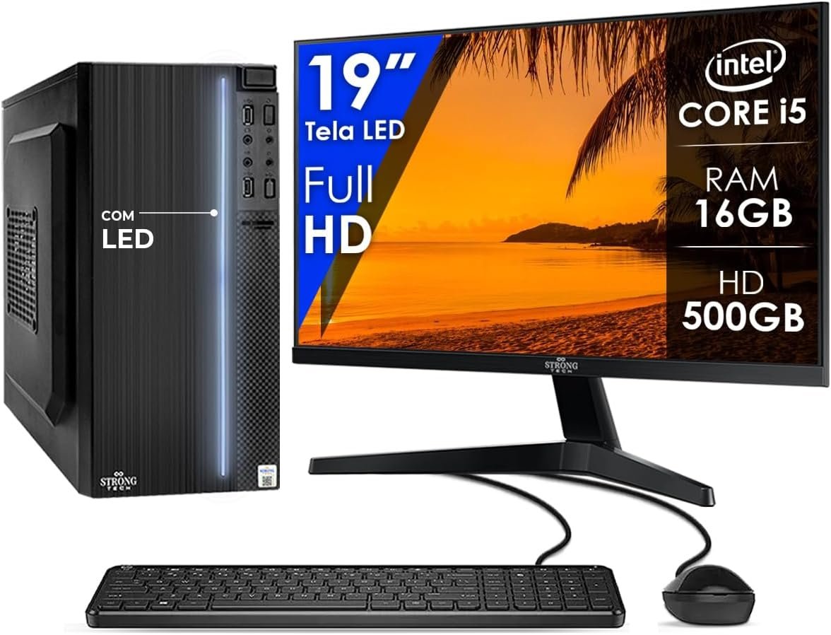 Computador Completo Intel Core i5 16GB HD 500GB Monitor 19″ 4 Núcleos Super Turbo Pc Hdmi Teclado e Mouse Strong TechComputador Completo Intel Core i5 16GB HD 500GB Monitor 19″ 4 Núcleos Super Turbo Pc Hdmi Teclado e Mouse Strong Tech