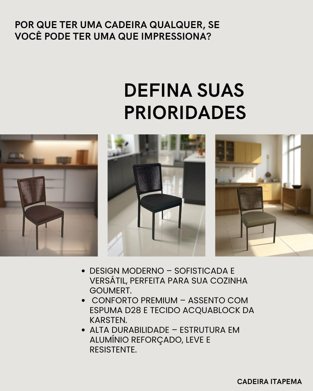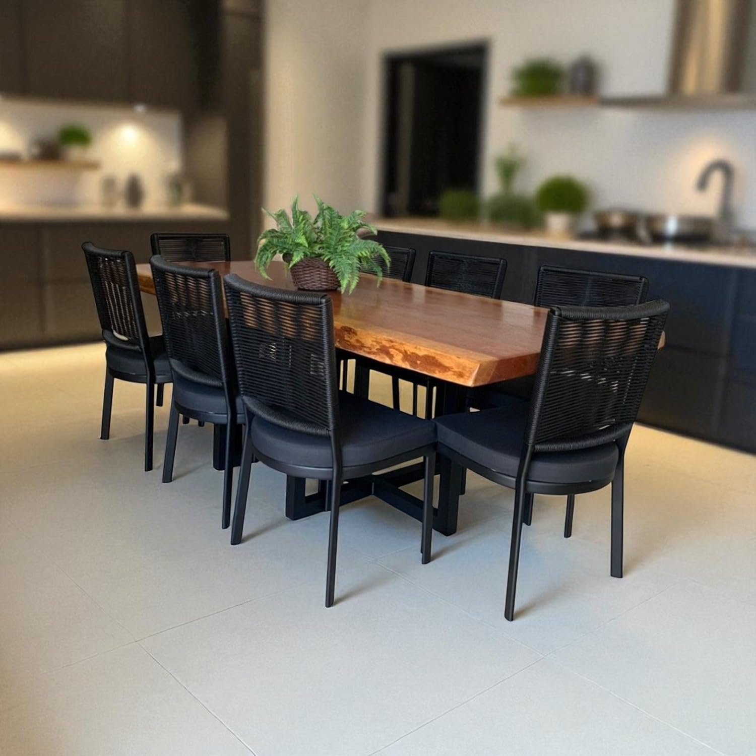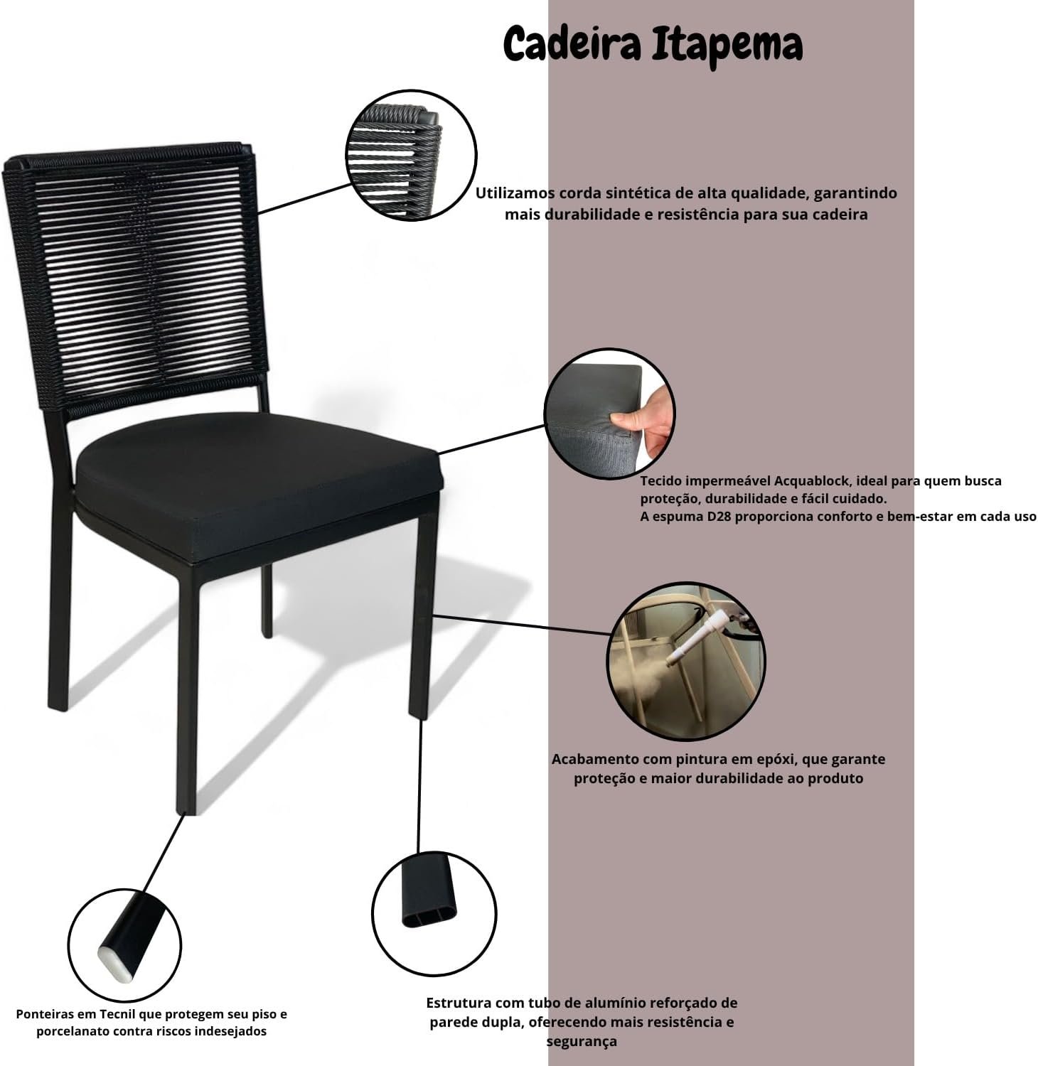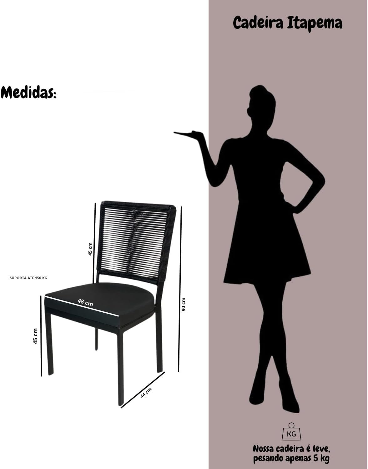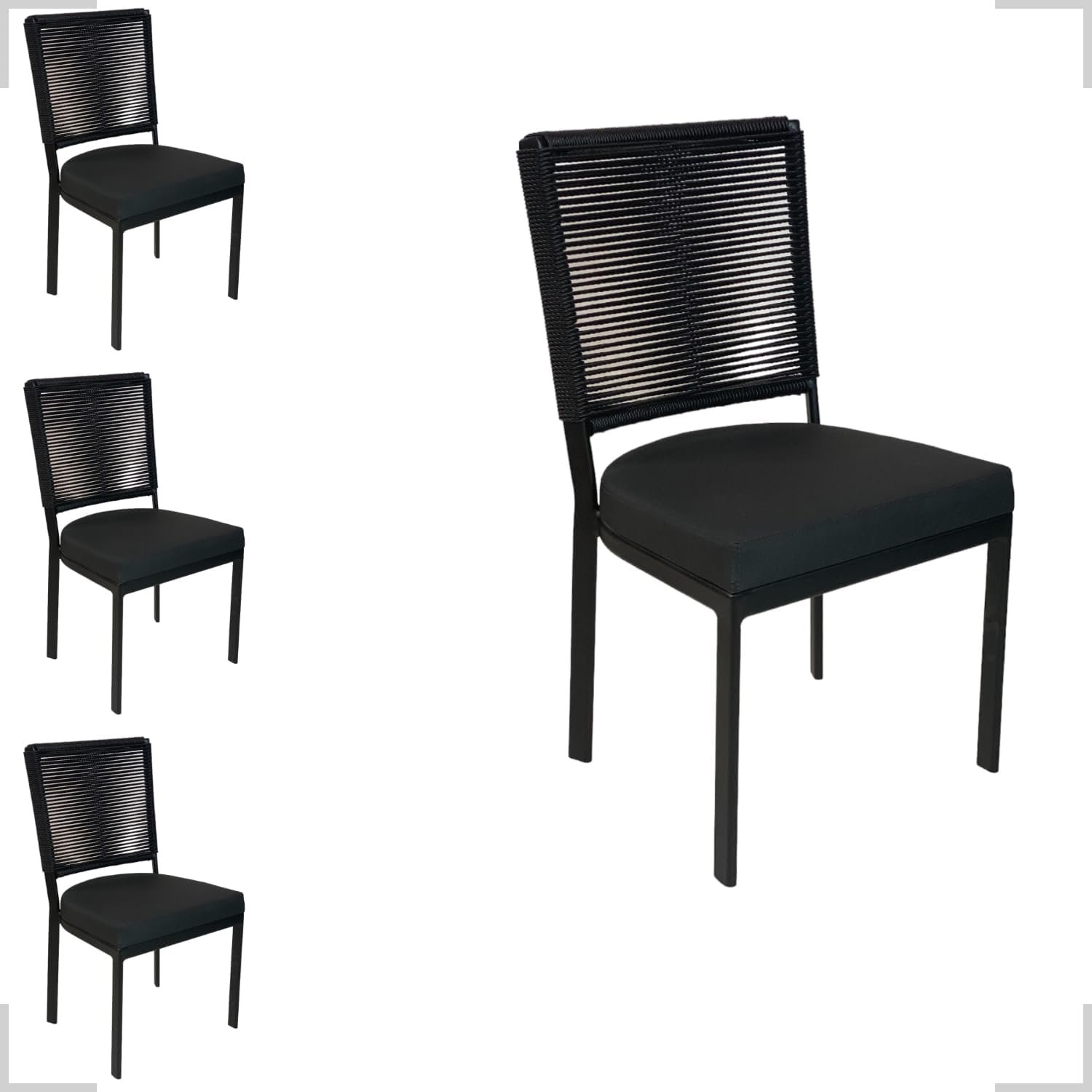Conjunto 4 Cadeira de Alumínio com Corda Sintética Para cozinha Area Gourmet churrasqueira balcão Assento Estofado e Pintura Eletroestática Aluminum Decor Tecnofoil (PRETO)