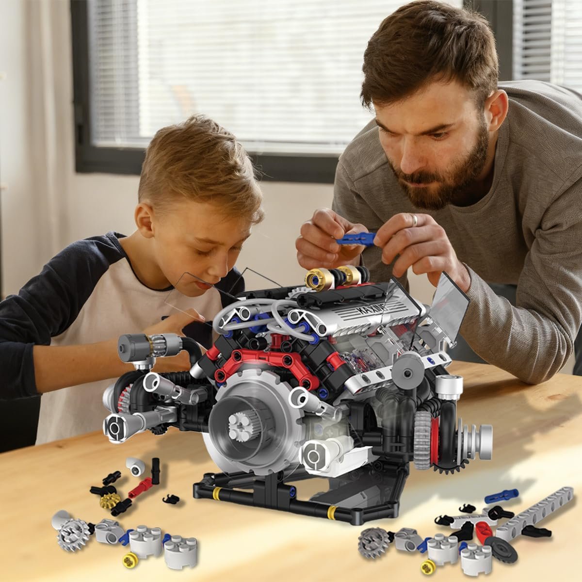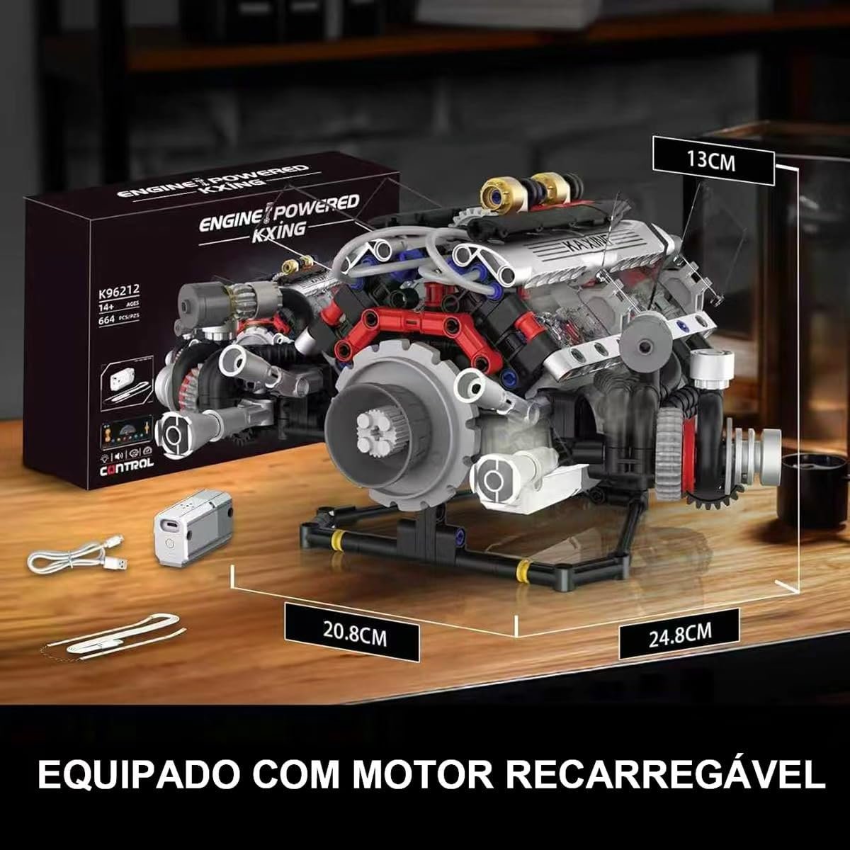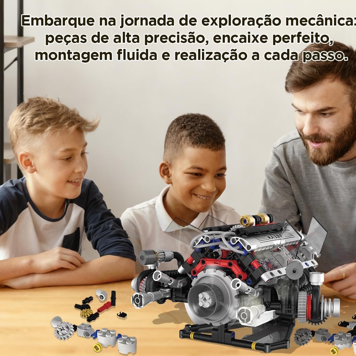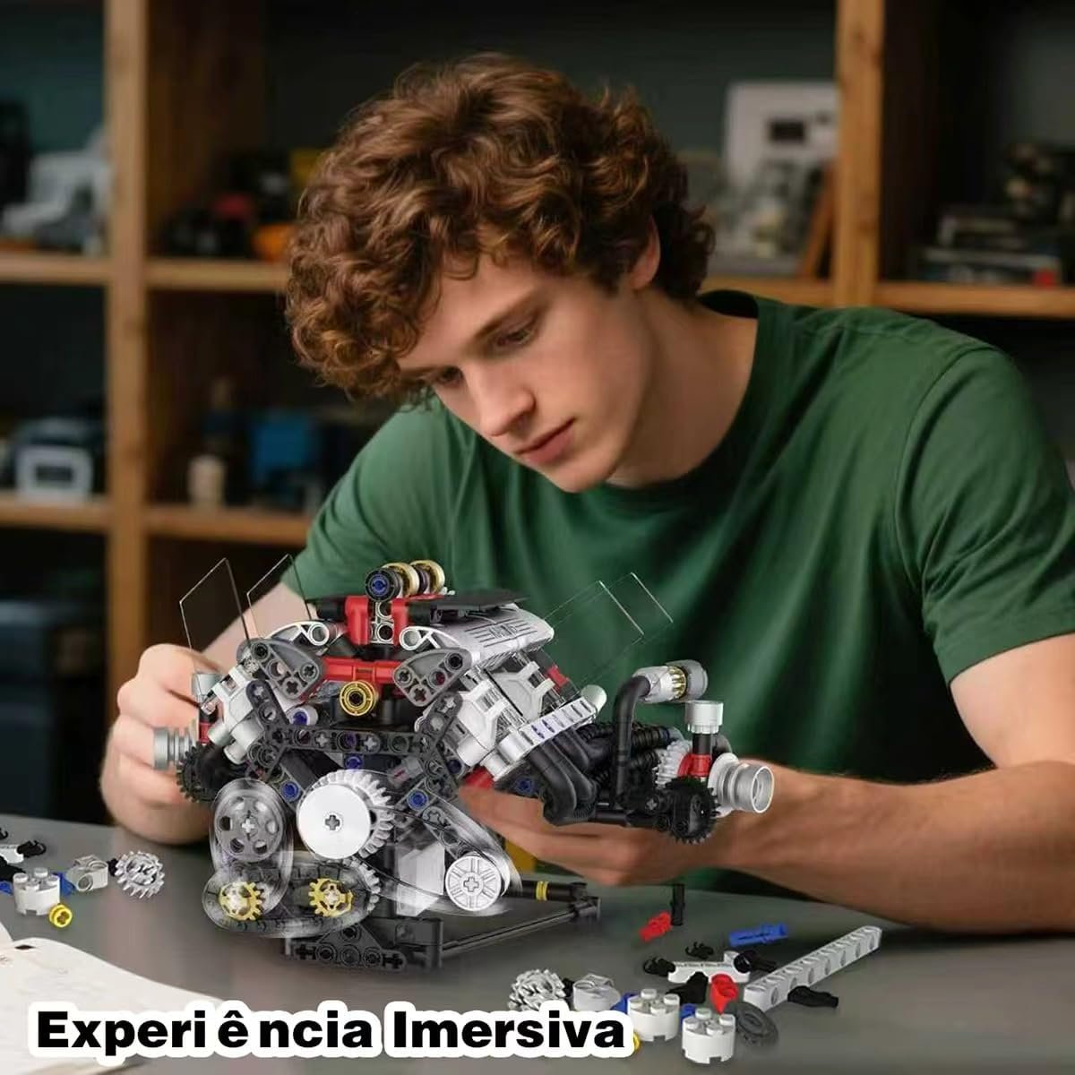 Conjunto de Blocos de Montar Motor V8 – Modelo Funcional, Indicado para Crianças a Partir de 14 Anos e AdultosConjunto de Blocos de Montar Motor V8 – Modelo Funcional, Indicado para Crianças a Partir de 14 Anos e Adultos
