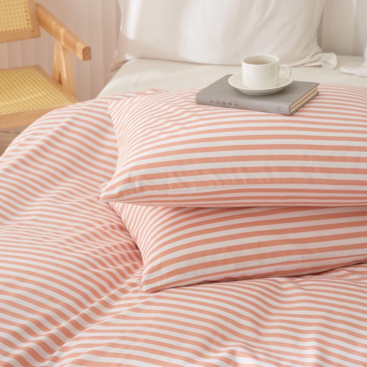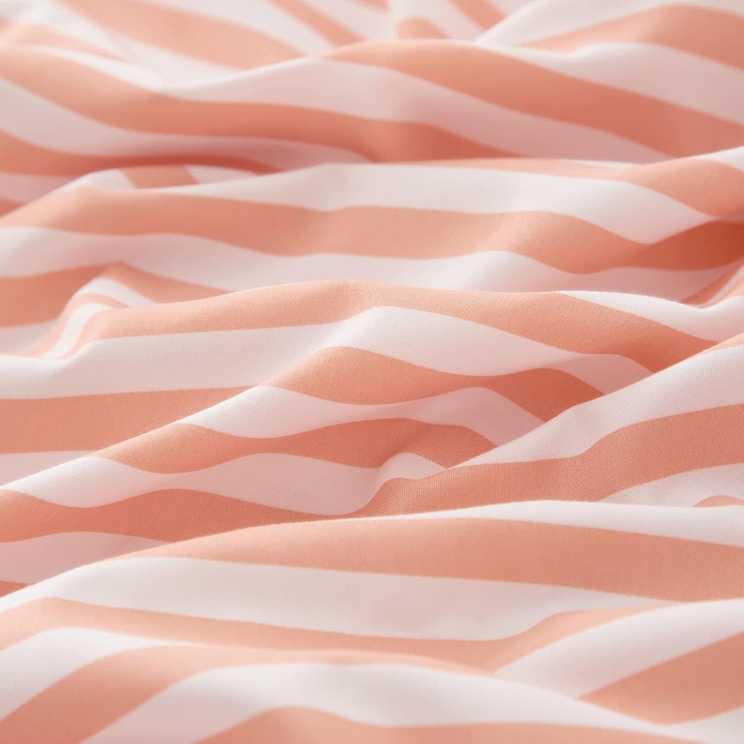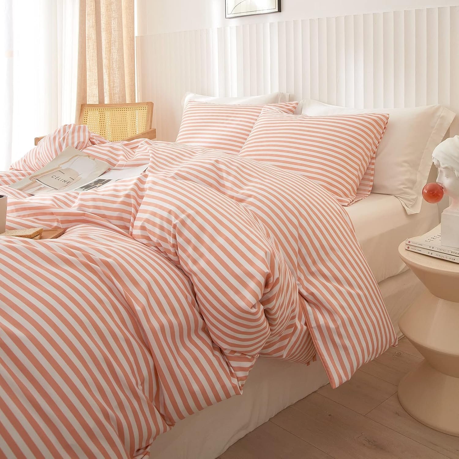 Conjunto de edredom completo, com estampa de listras rosa e brancas, estilo moderno, com 2 fronhas, leve, 3 peças, boêmio, conjunto de edredom listrado e fofo