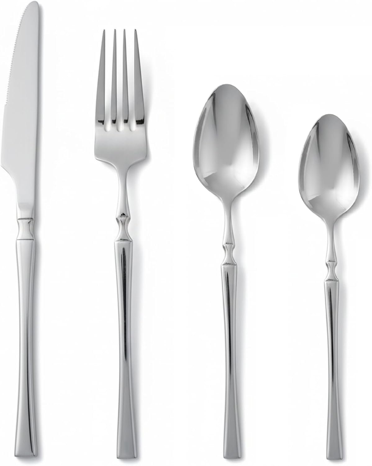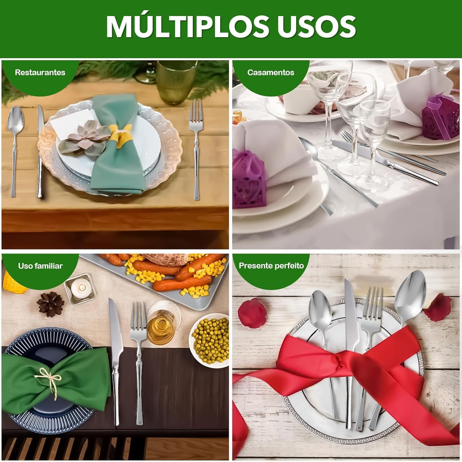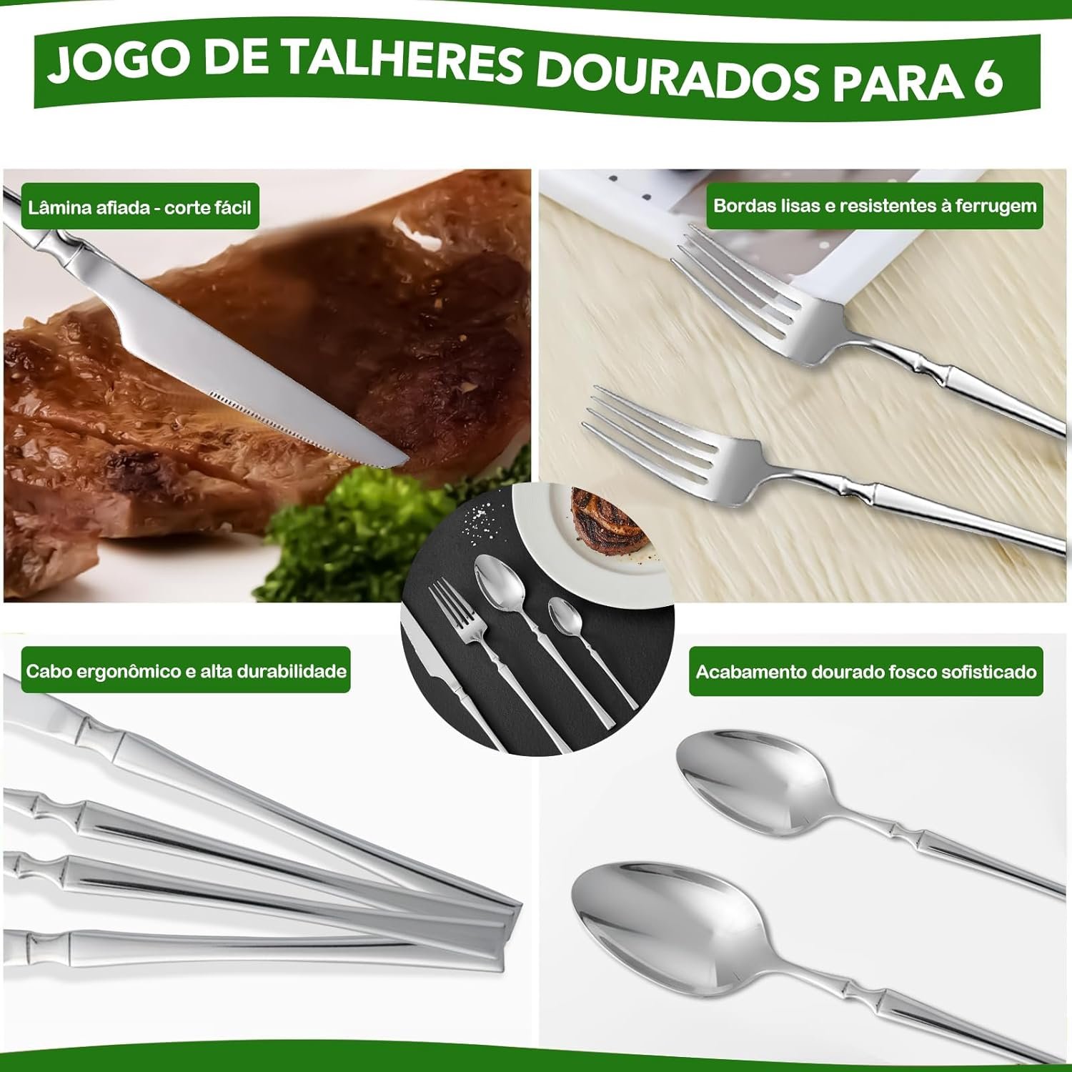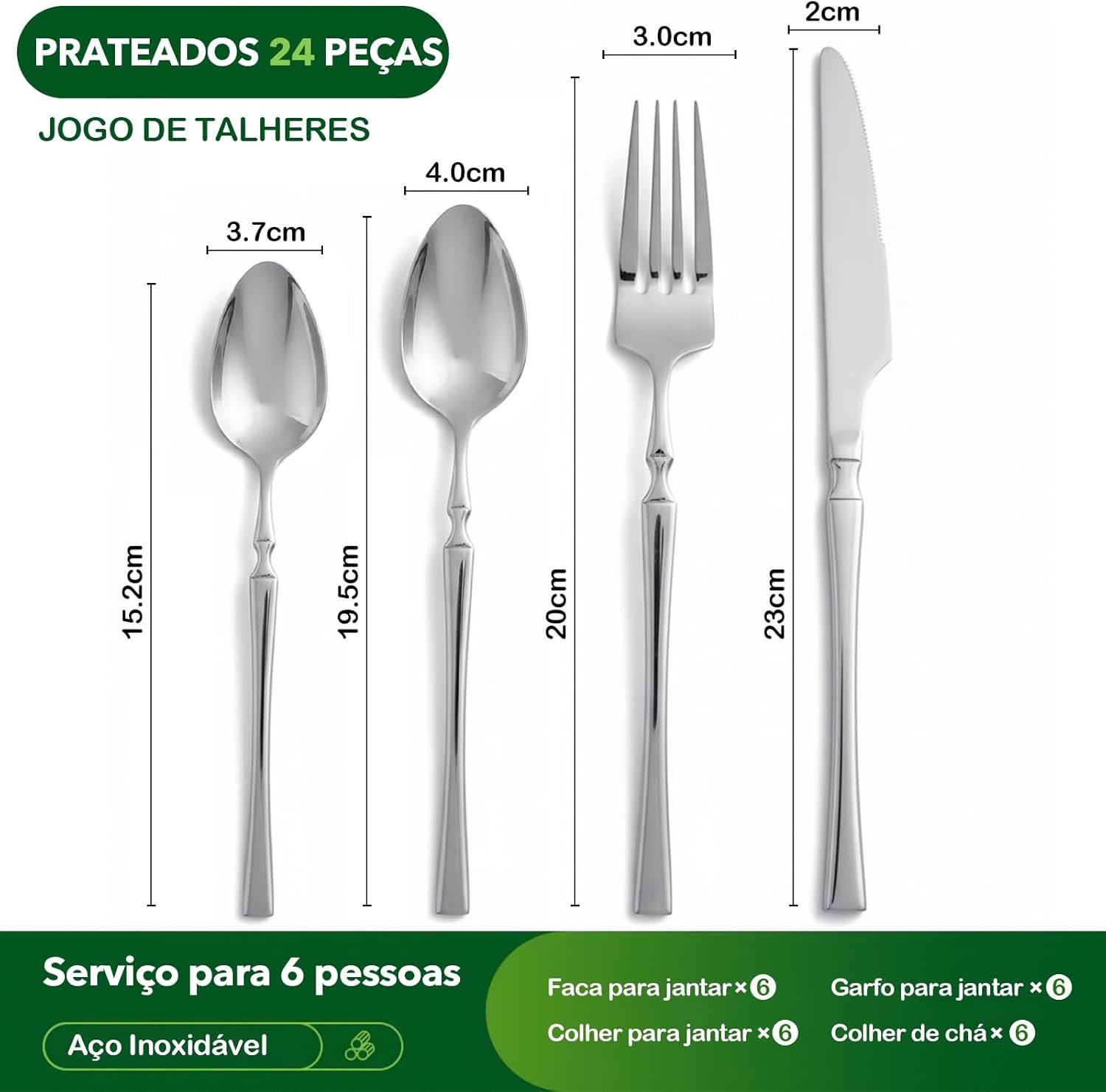 Conjunto de Talheres 24 Peças Aço Inoxidável Premium – 6 Facas, 6 Garfos, 6 Colheres, 6 Colheres Chá para Casa, Restaurante, Casamento, Festas – Presente Elegante