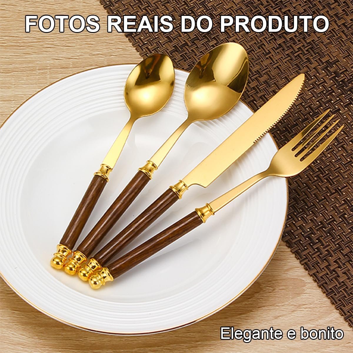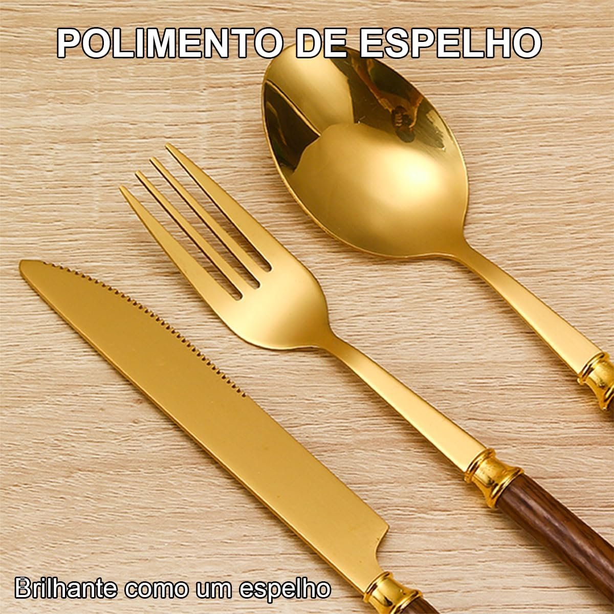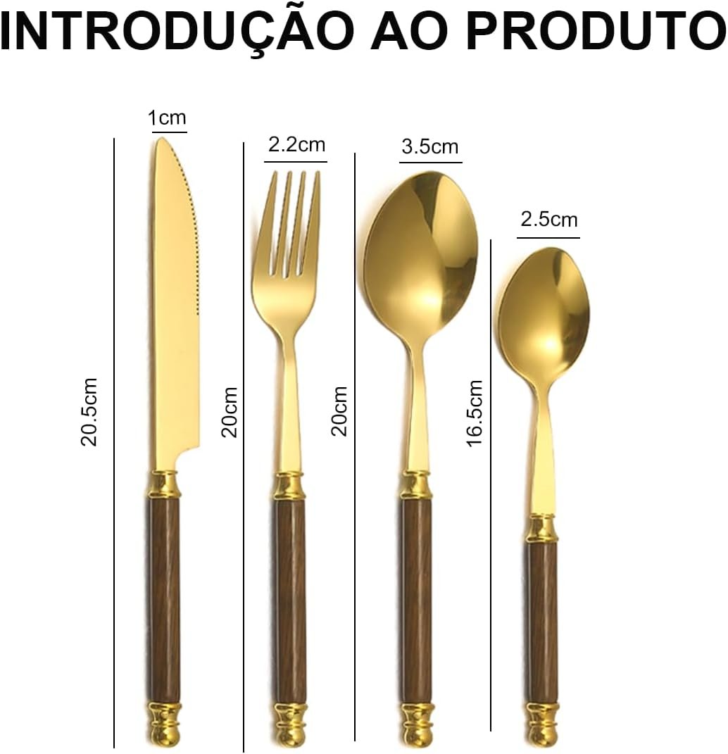 Conjunto de Talheres para Casa 24 Peças – Kit Completo em Aço Inoxidável com Facas, Garfos e Colheres Duplas