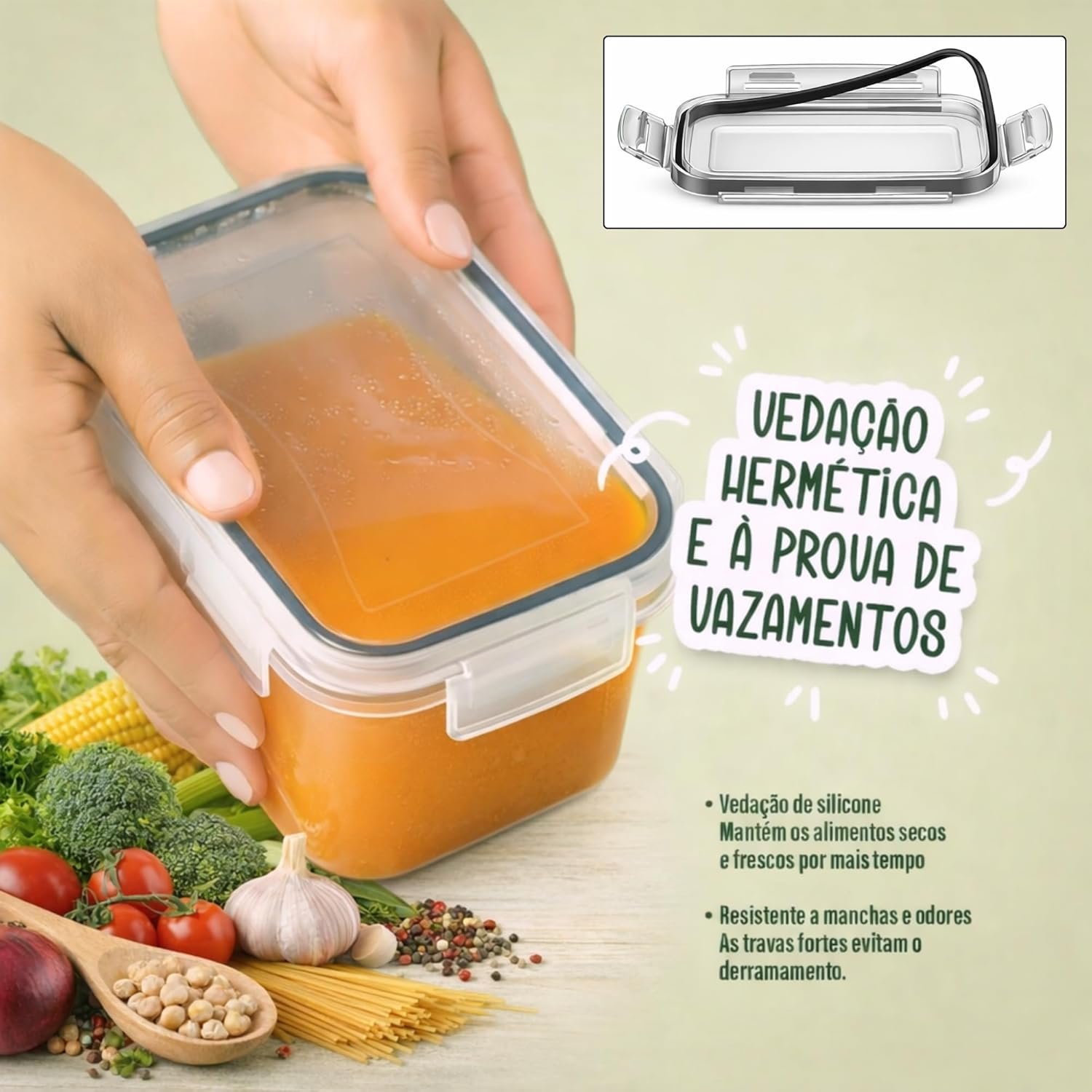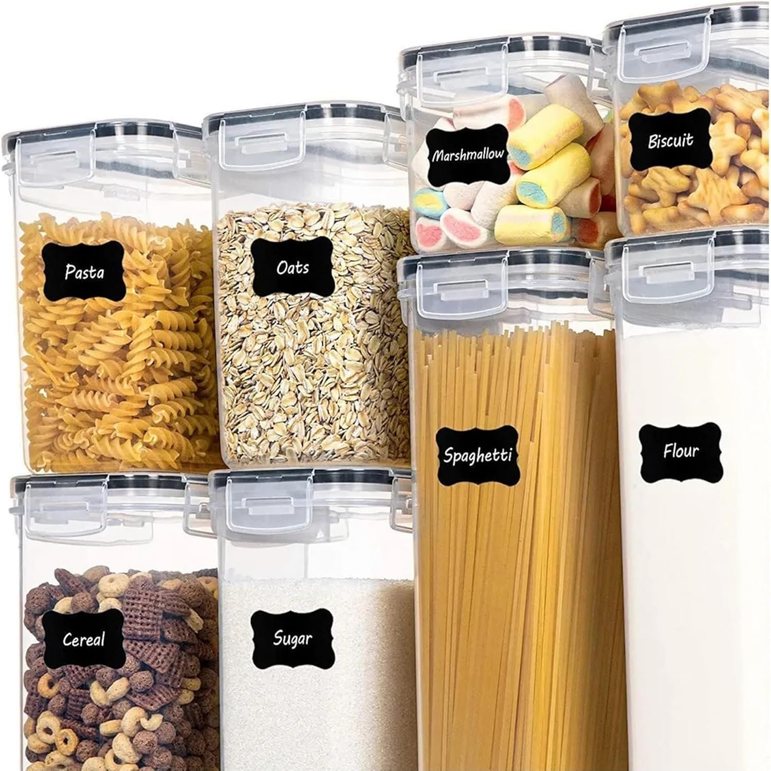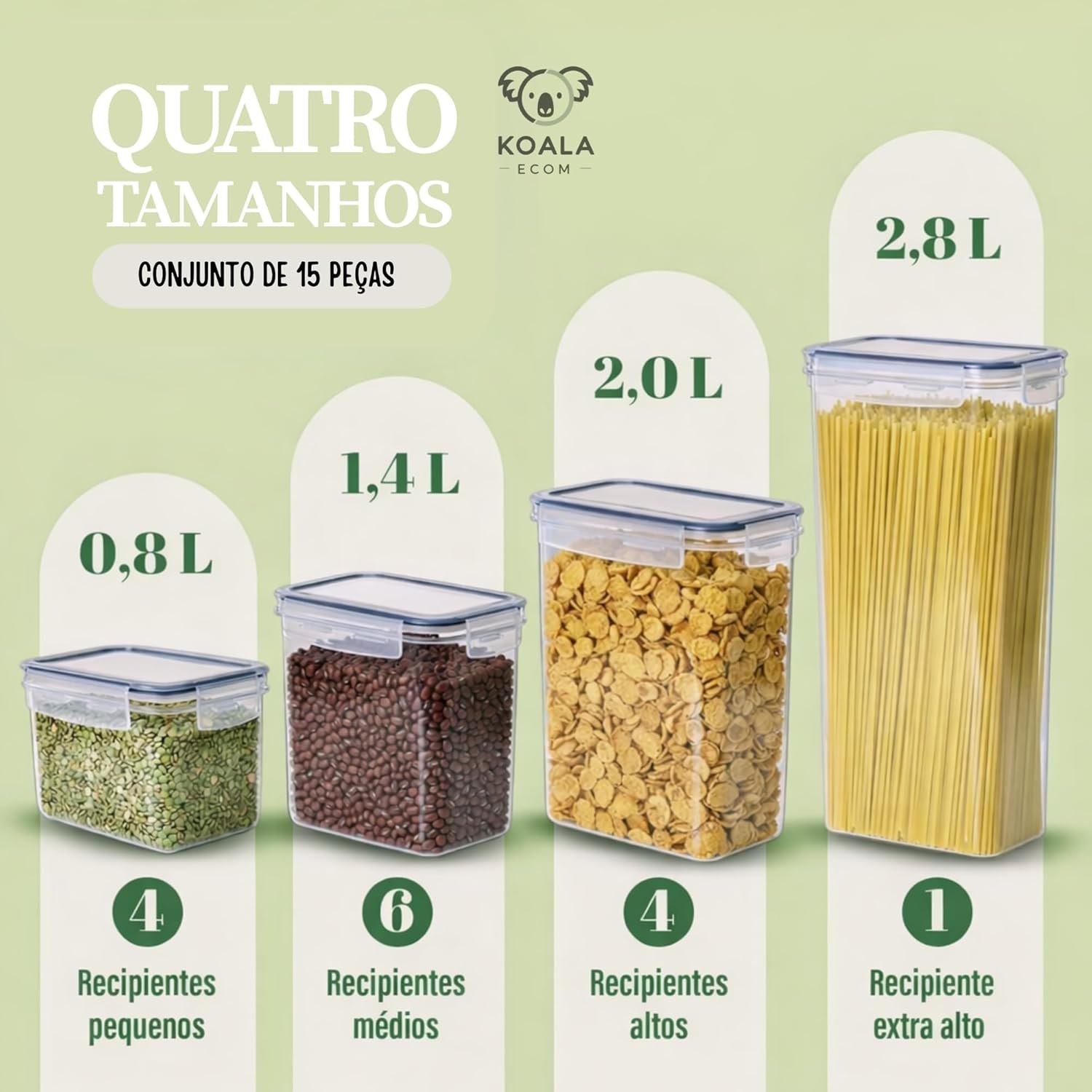Conjunto Kit 15 Potes Mantimentos Herméticos para Cozinha e Despensa, Tampa com Vedação Silicone, Organizadores Tampa Com Trava Ideal para Armazenar Grãos, Cereais, Farinha e Massas