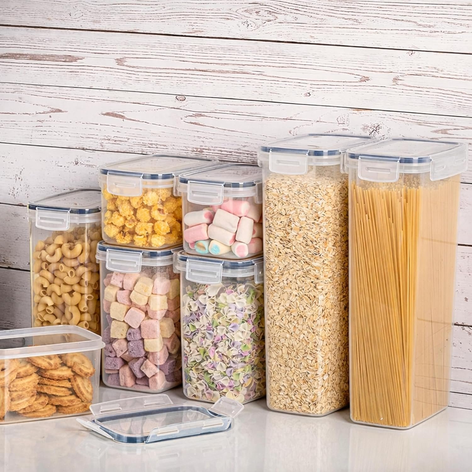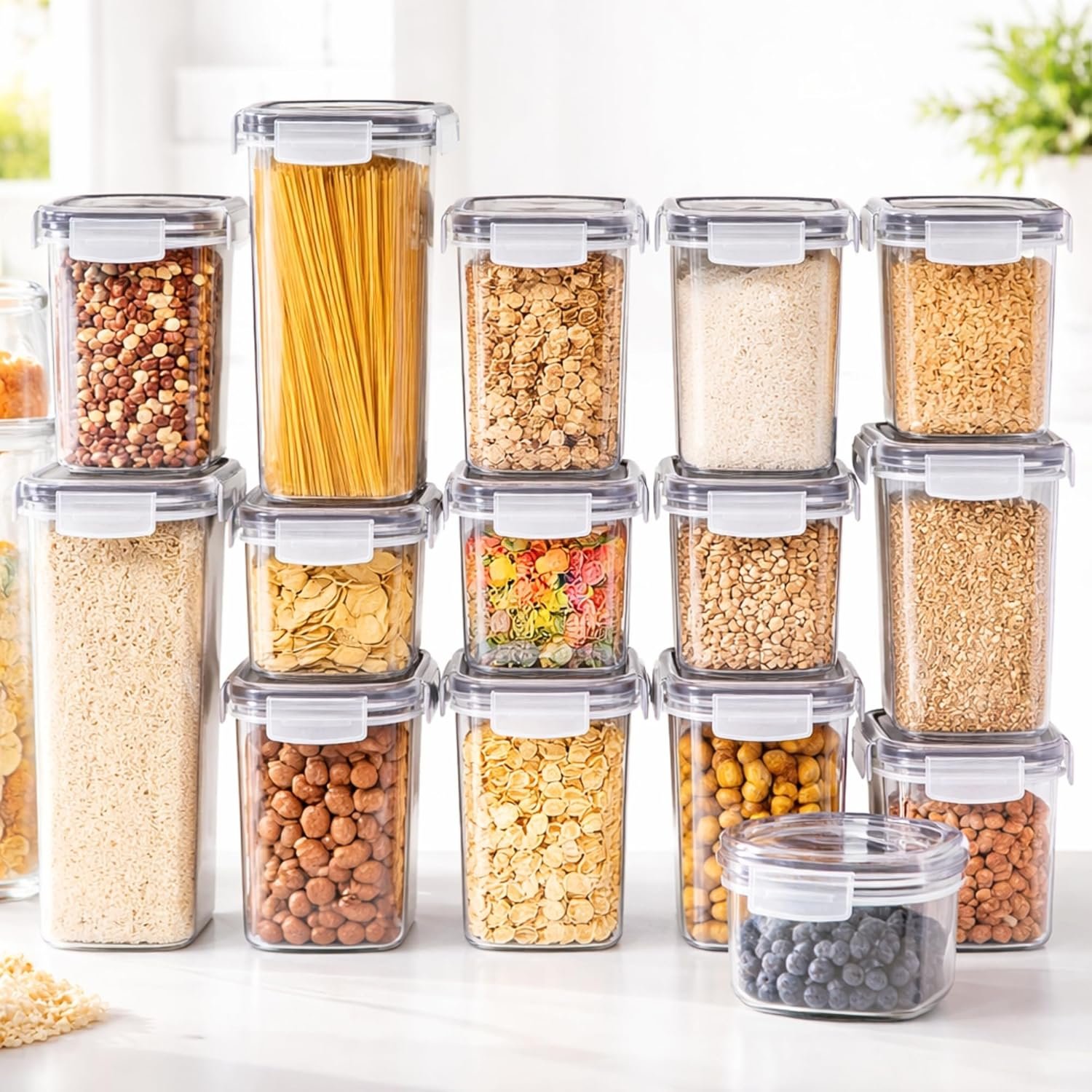 Conjunto Kit 15 Potes Mantimentos Herméticos para Cozinha e Despensa, Tampa com Vedação Silicone, Organizadores Tampa Com Trava Ideal para Armazenar Grãos, Cereais, Farinha e MassasConjunto Kit 15 Potes Mantimentos Herméticos para Cozinha e Despensa, Tampa com Vedação Silicone, Organizadores Tampa Com Trava Ideal para Armazenar Grãos, Cereais, Farinha e Massas