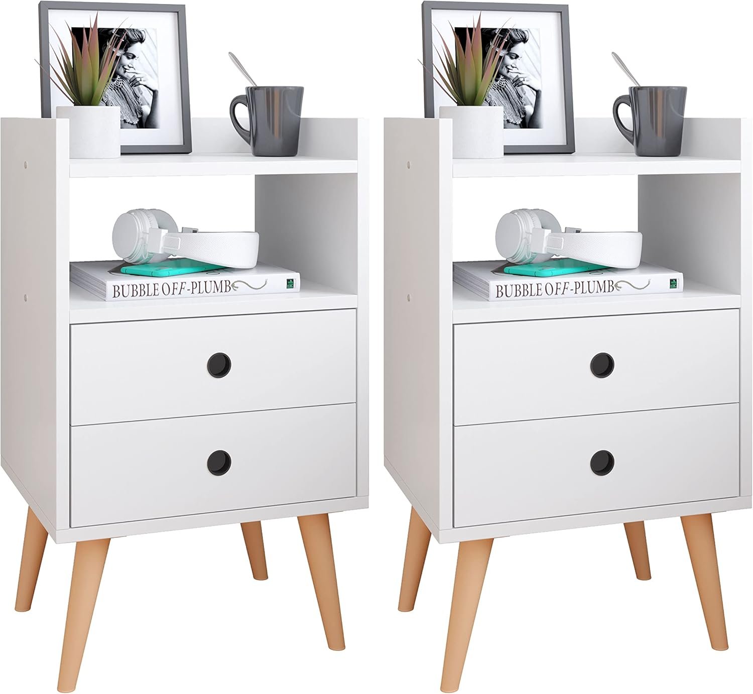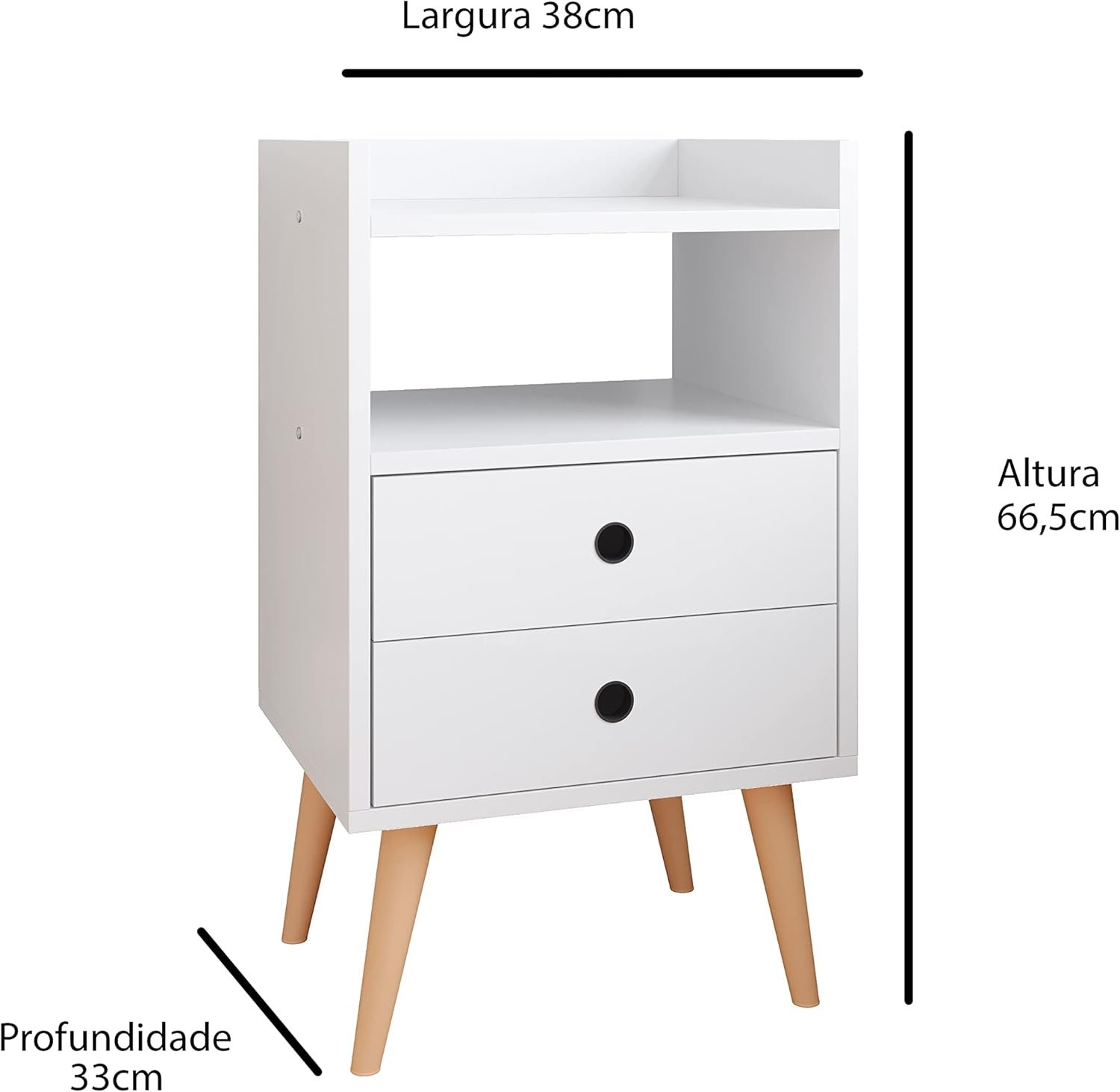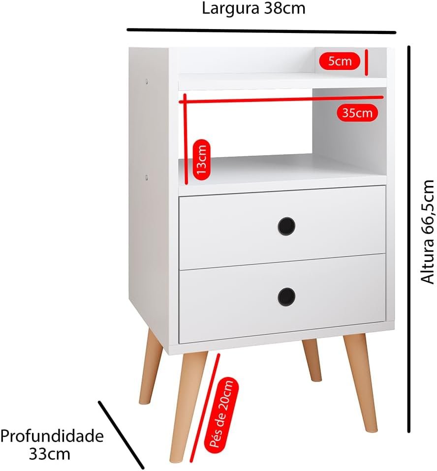Conjunto Mesa de Cabeceira Kit Mesinha Canto Quarto Lateral Cama 2 Gavetas Organizadoras Retrô Quarto – Dream RPM (BRANCO)