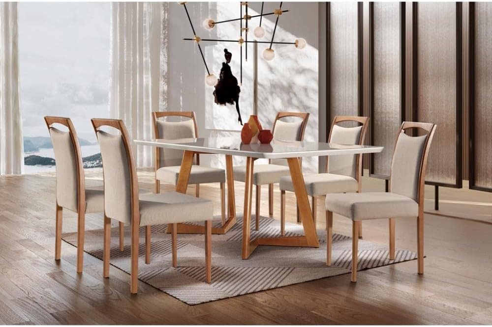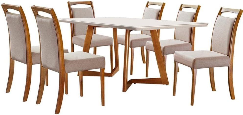 Conjunto Sala de Jantar Mesa Madeira Maciça 6 Cadeiras Safira Mobilare Imbuia Natural/off White/imbuia Natural