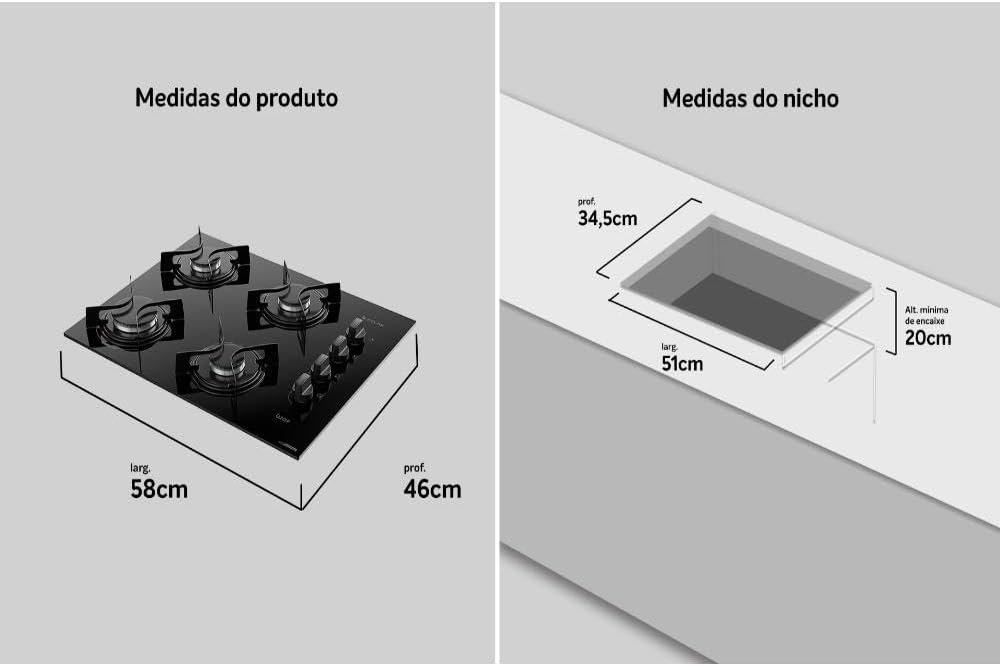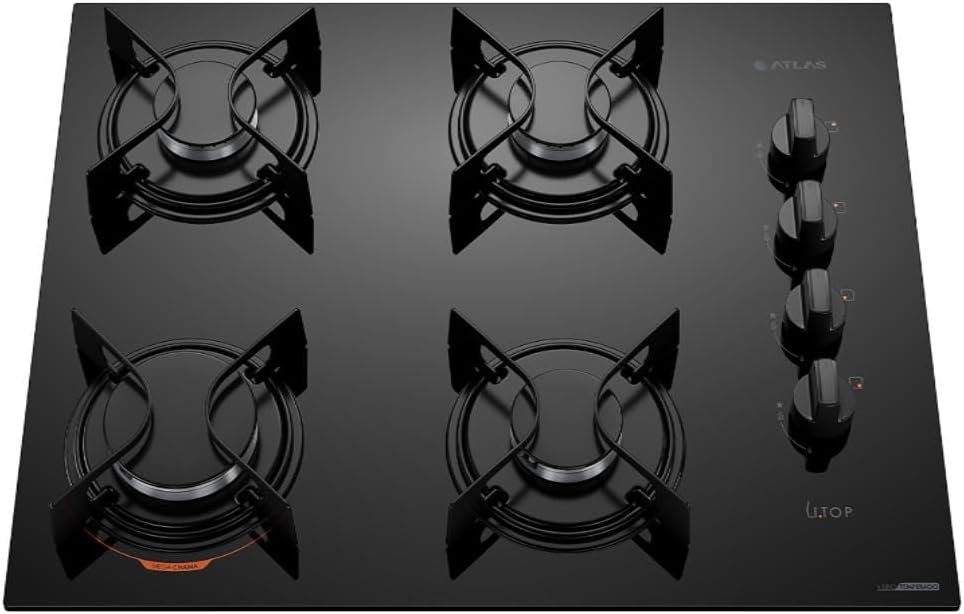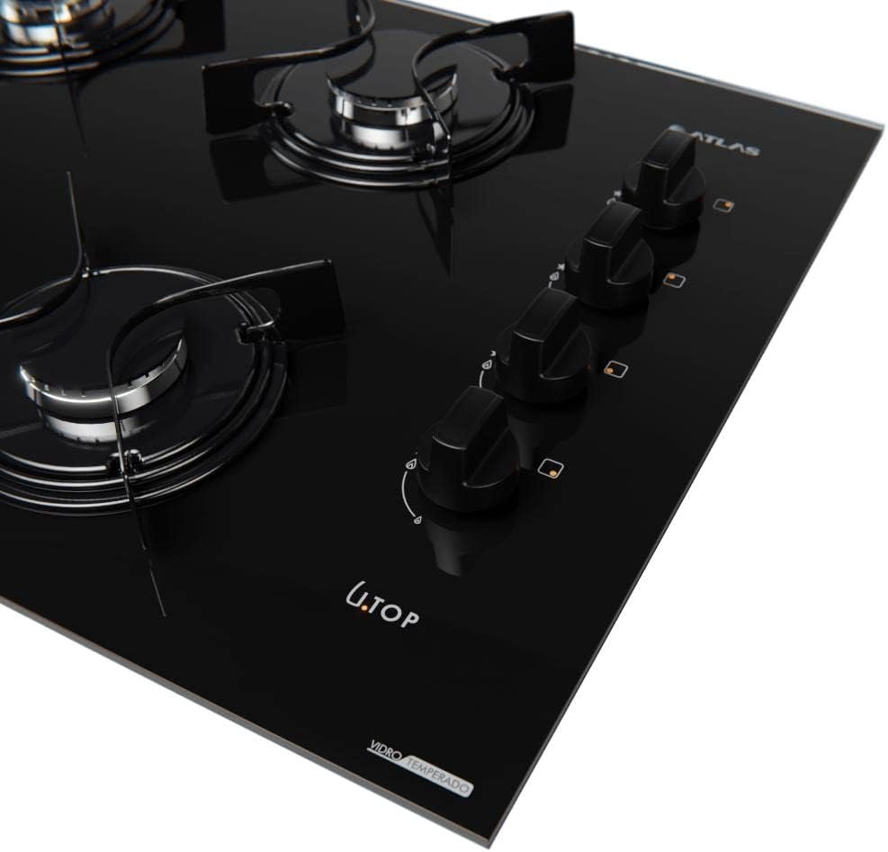 Cooktop 4 Bocas Preto com Mesa de Vidro Atlas U Top Bivolt