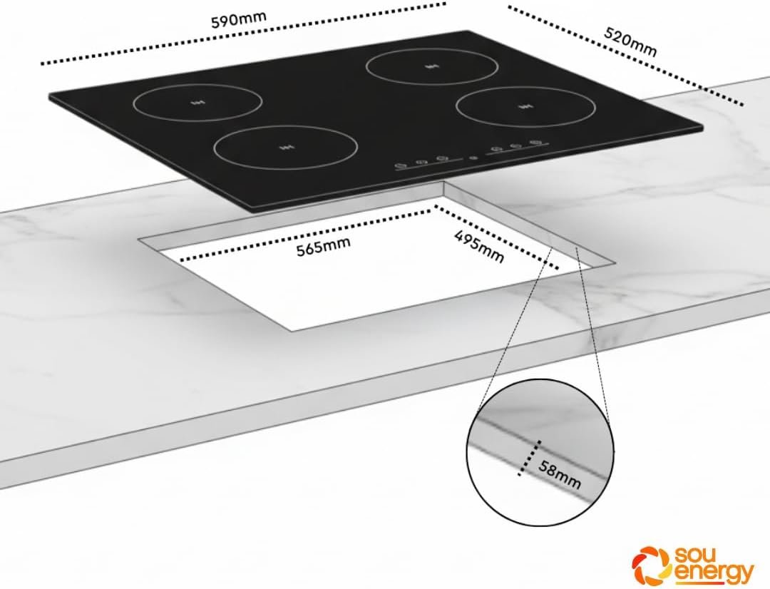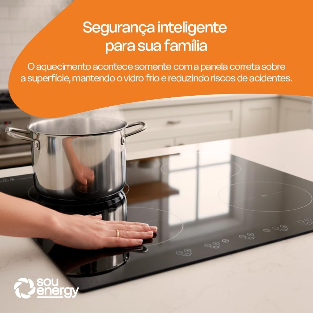 Cooktop Indução 4 Bocas 7200w Turbo Touch Preto | Sou Energy