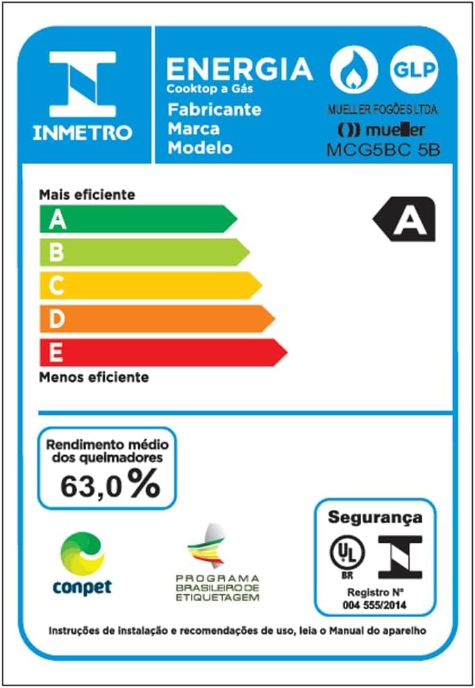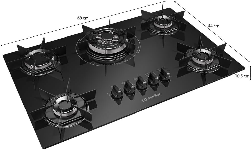 Cooktop Mueller 5 Bocas Queimador Tripla Chama MCG5BC Bivolt