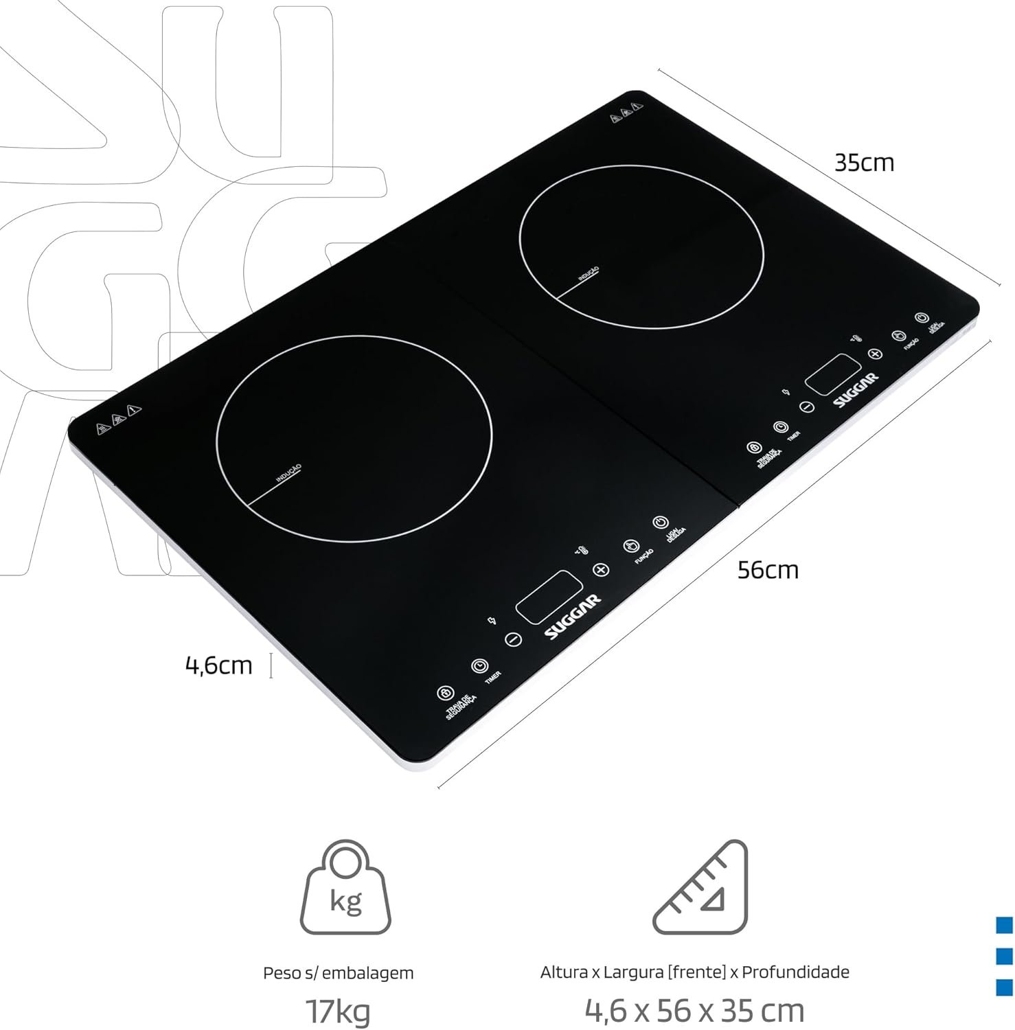 - Conta com 2 zonas de aquecimento para preparar diferentes pratos simultaneamente