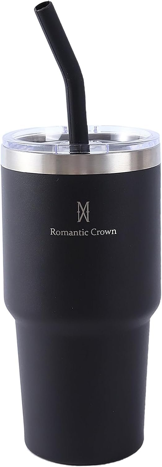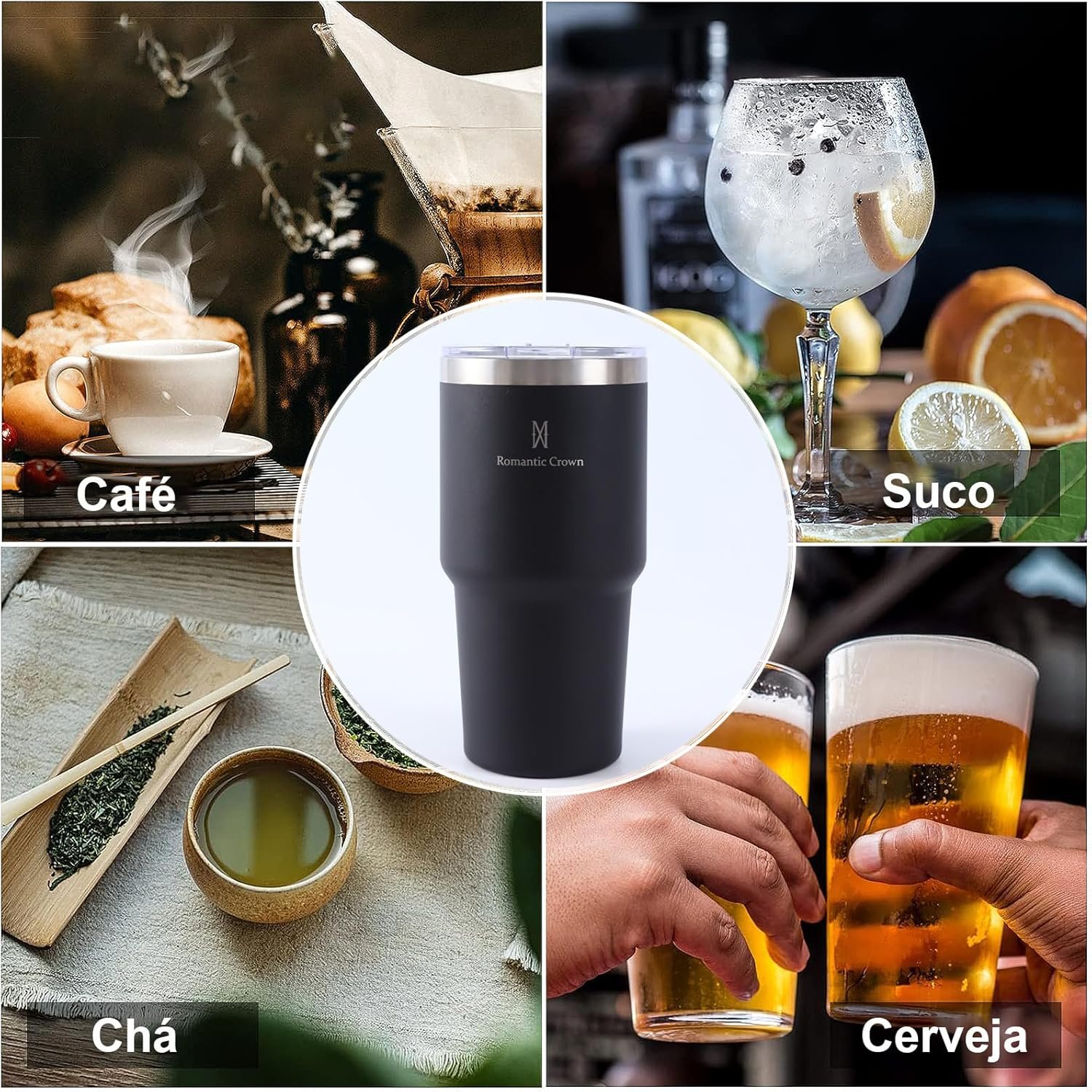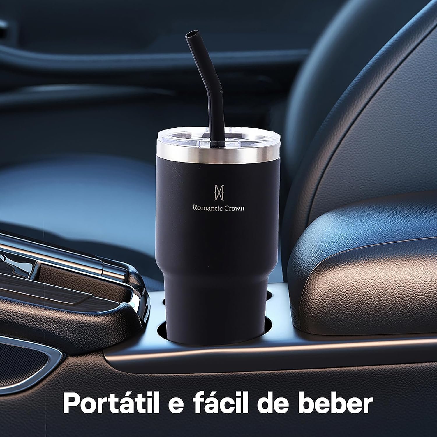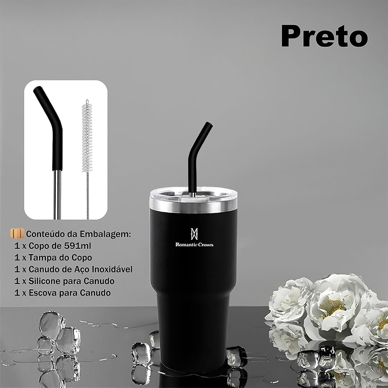 Copo Térmico de Aço Inoxidável 591ml, com Canudo e Tampa, Garrafa Termica Isolada a Vácuo Copos Garrafas Termo Pequeno Para Viagem Portátil, Para Água, Chá Gelado, Café, Smoothies e Muito Mais