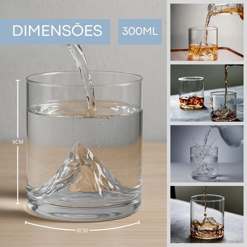 Copo Whisky Baixo Montanha em Vidro Cristalino, Acessórios para Bar.