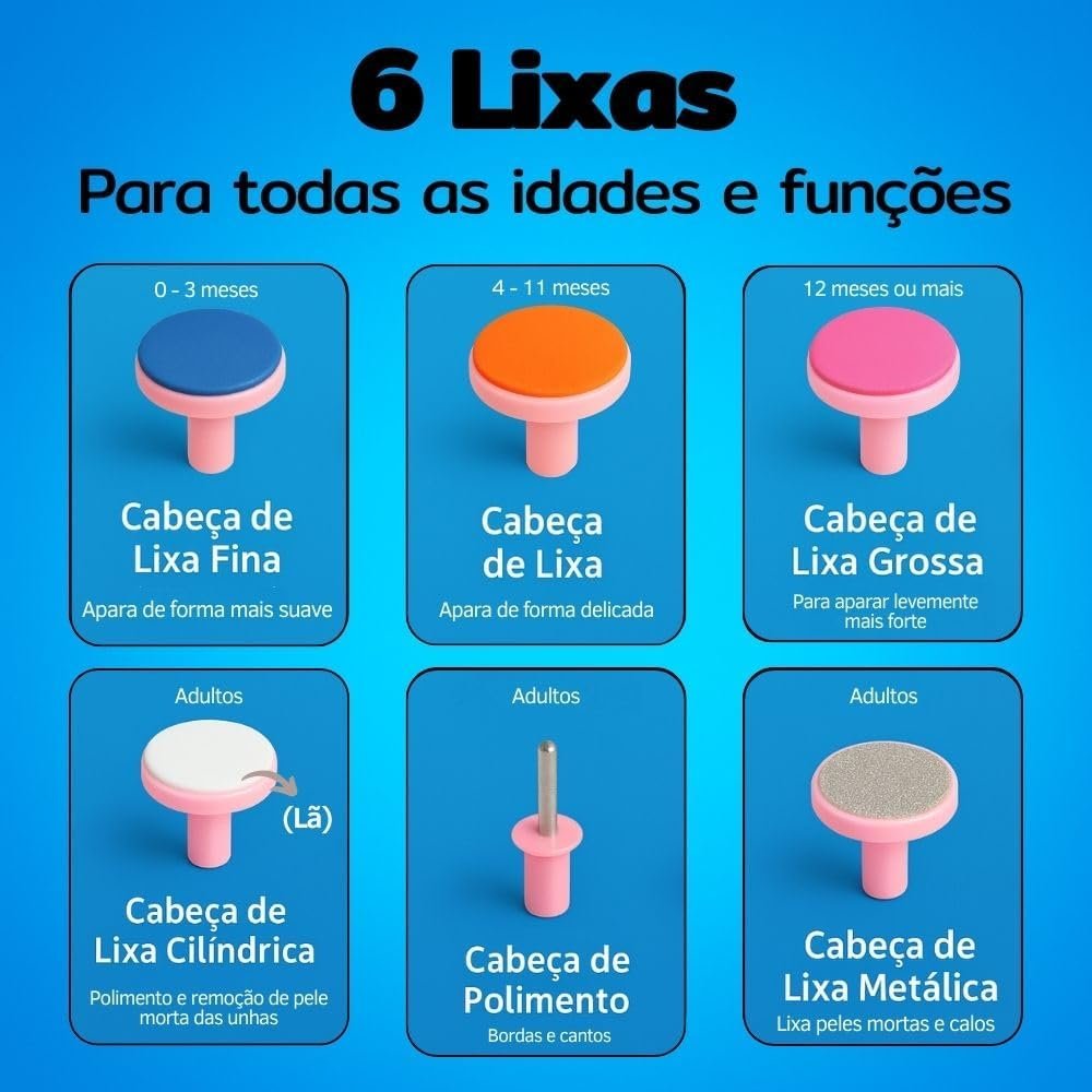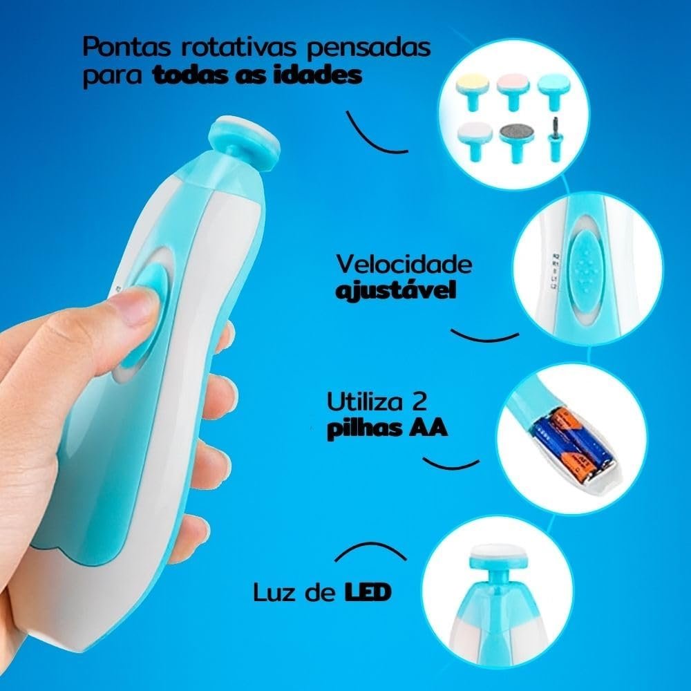 Cortador Aparador Kit Lixa De Unha Bebê 6 em 1 Elétrica Silencioso Com Luz LED Para Recém Nascido Até Adulto SeguroCortador Aparador Kit Lixa De Unha Bebê 6 em 1 Elétrica Silencioso Com Luz LED Para Recém Nascido Até Adulto Seguro