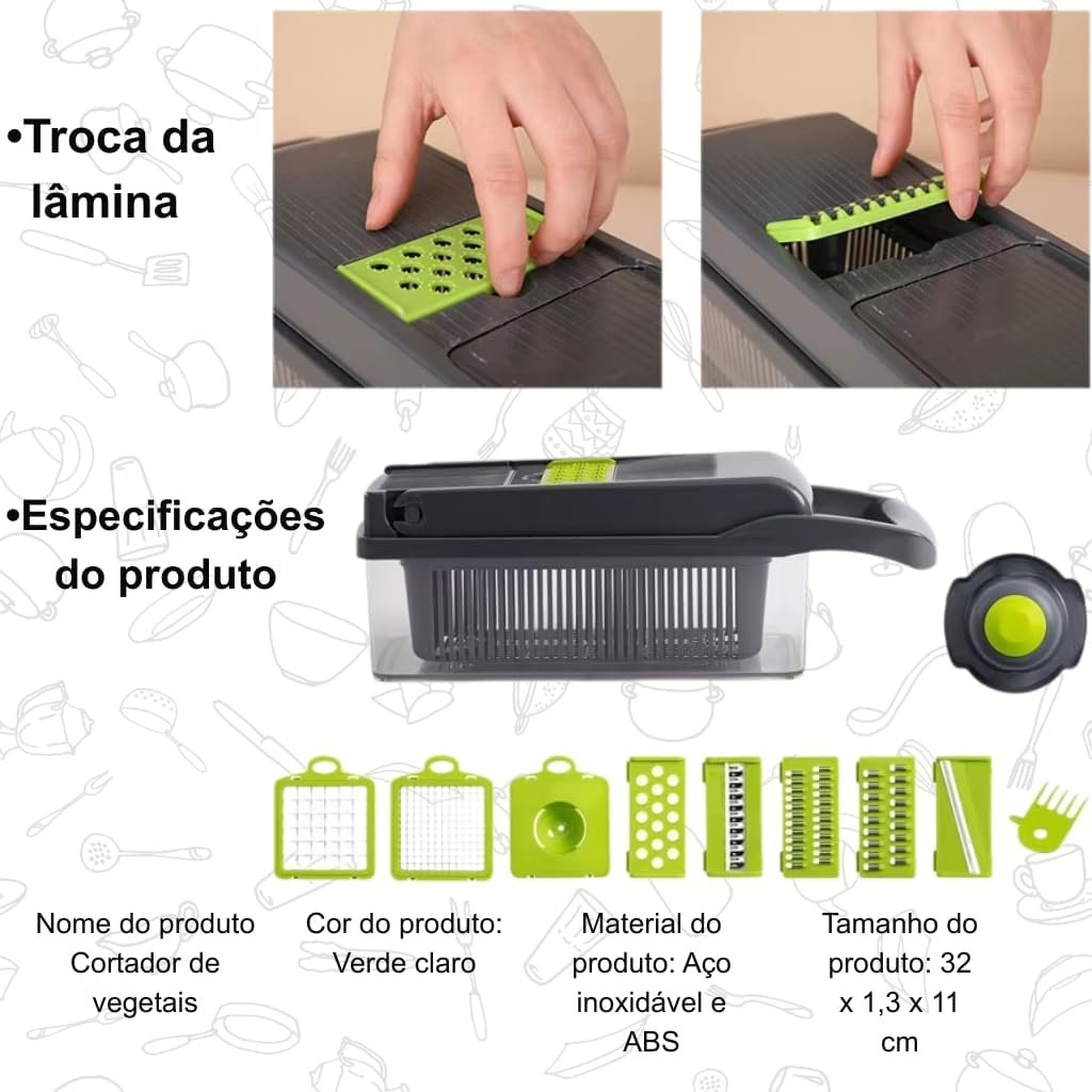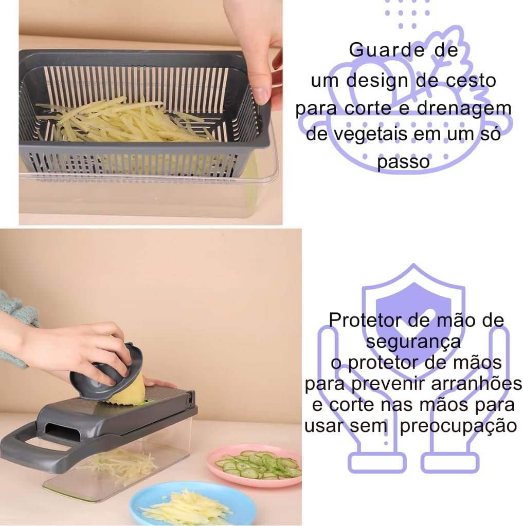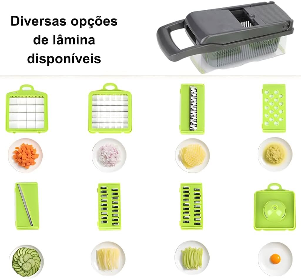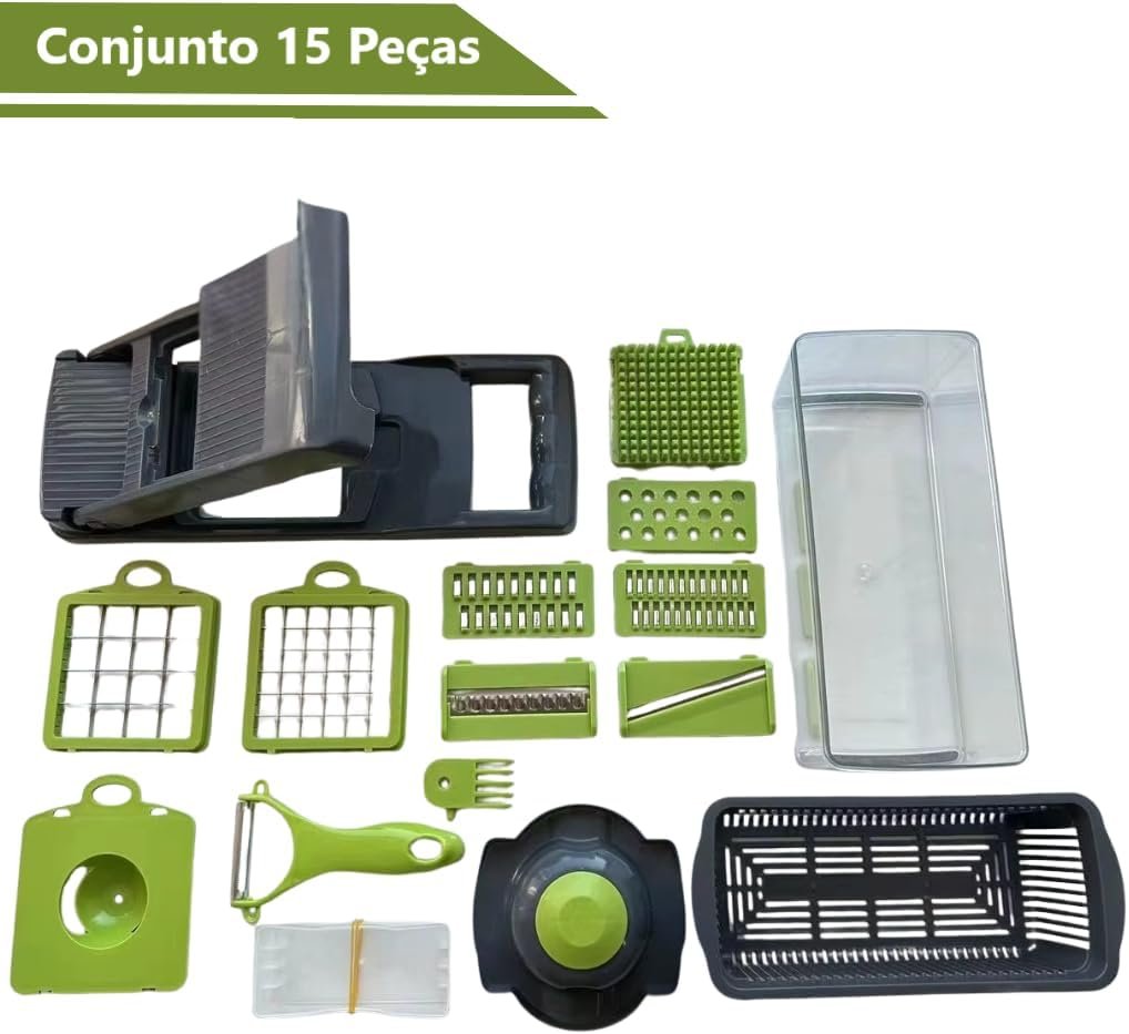 Cortador Fatiador Ralador de Legumes Multifuncional 15 em 1 – Fatiador de Bandolim Máquina Profissional de Cortar Alimentos Cebolas Vegetais Frutas Legumes Premium Hytalux