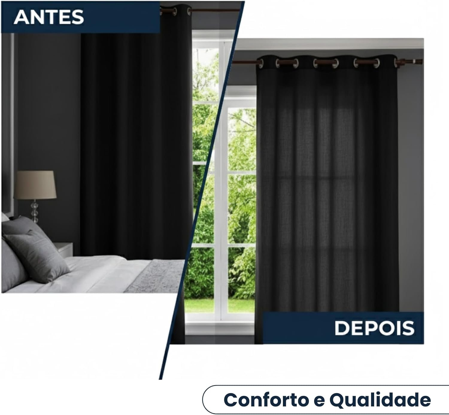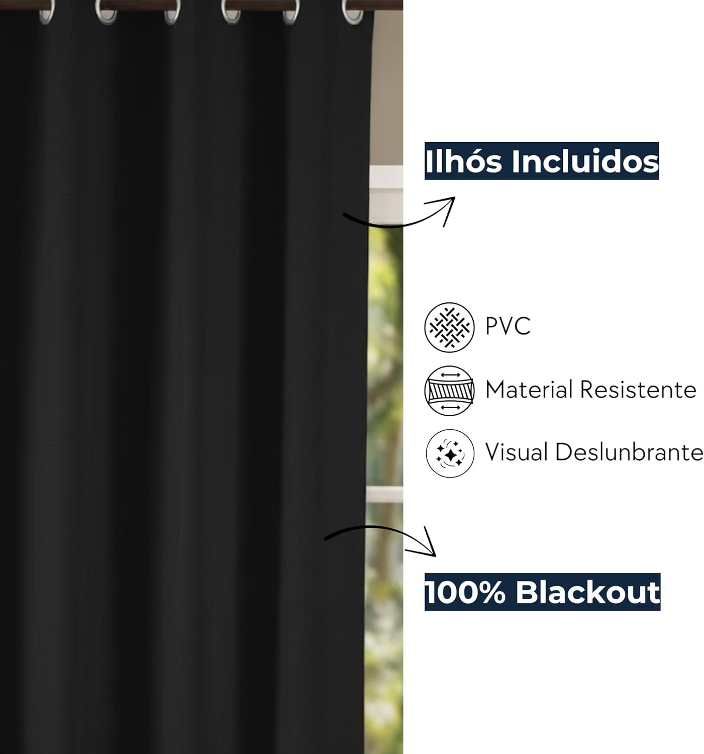 Cortina Blackout 2,80m x 2,50m Corta luz 100% com Ilhós Sala Quarto Casa Blecaute (Preto)