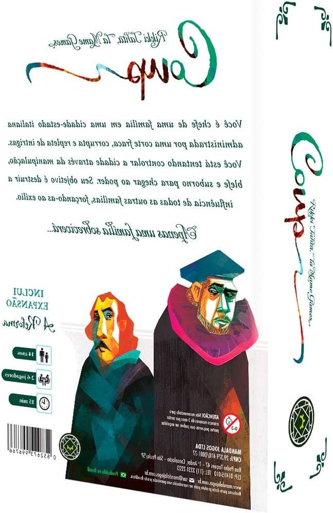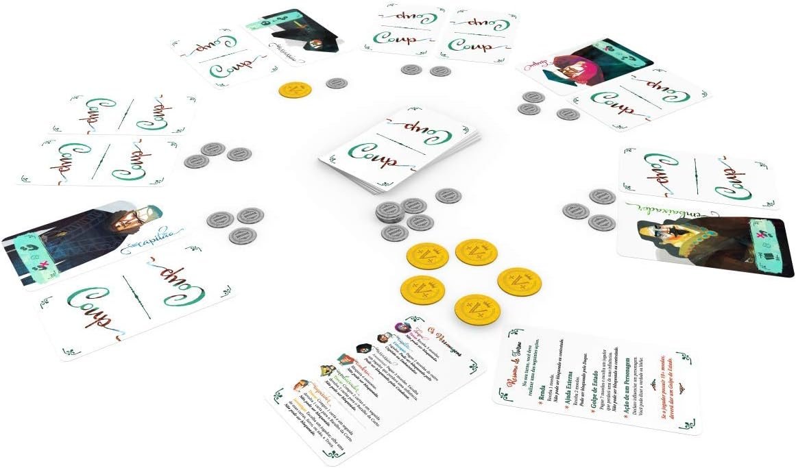 Descrição Curta: Desafie seus amigos em partidas estratégicas e emocionantes com o Coup – Mandala Jogos! Um jogo de blefe e intriga que vai testar suas habilidades de persuasão e estratégia. Prepare-se para descobrir quem é o mestre da manipulação e da dissimulação em meio a reviravoltas inesperadas. Garanta já o seu e mergulhe nessa experiência única!