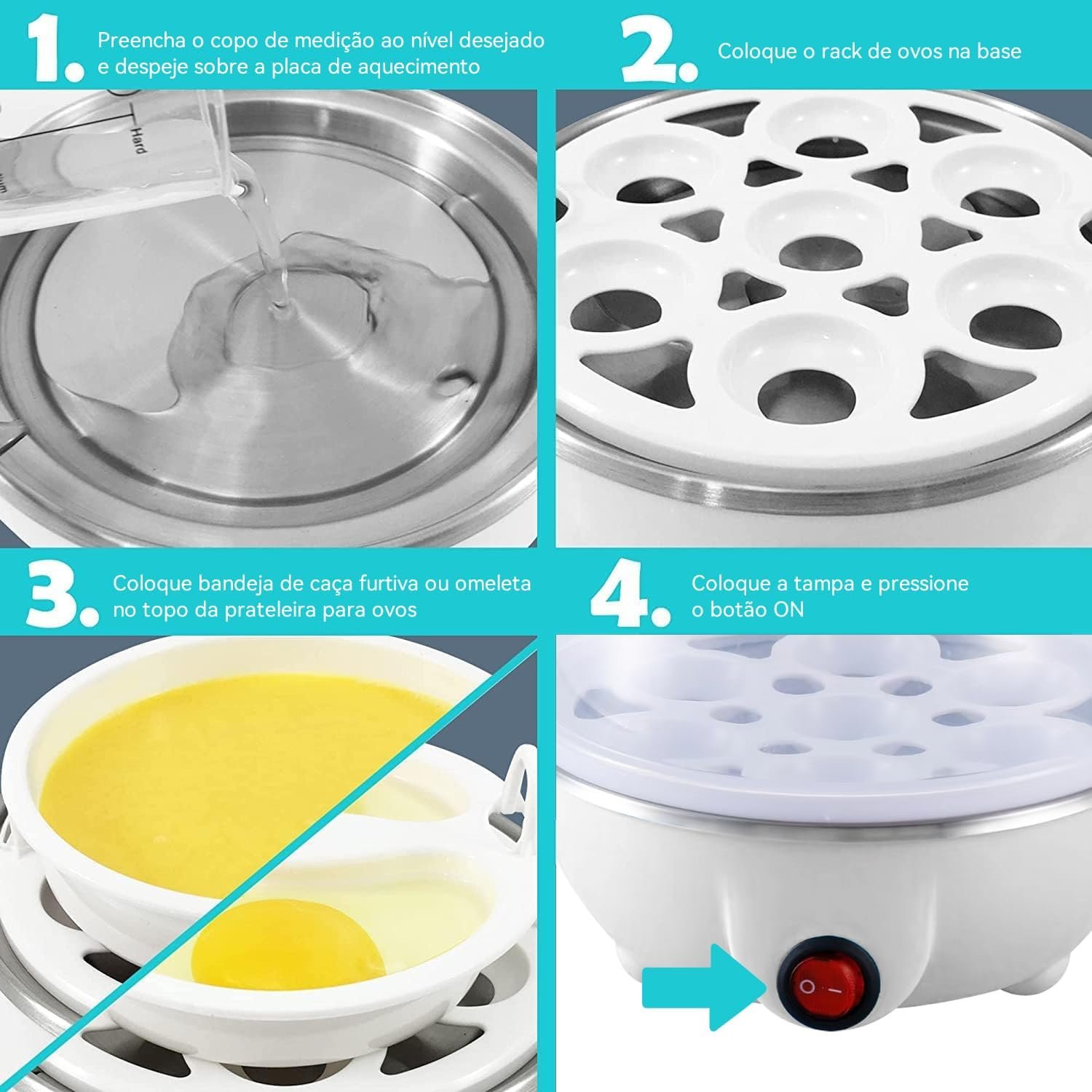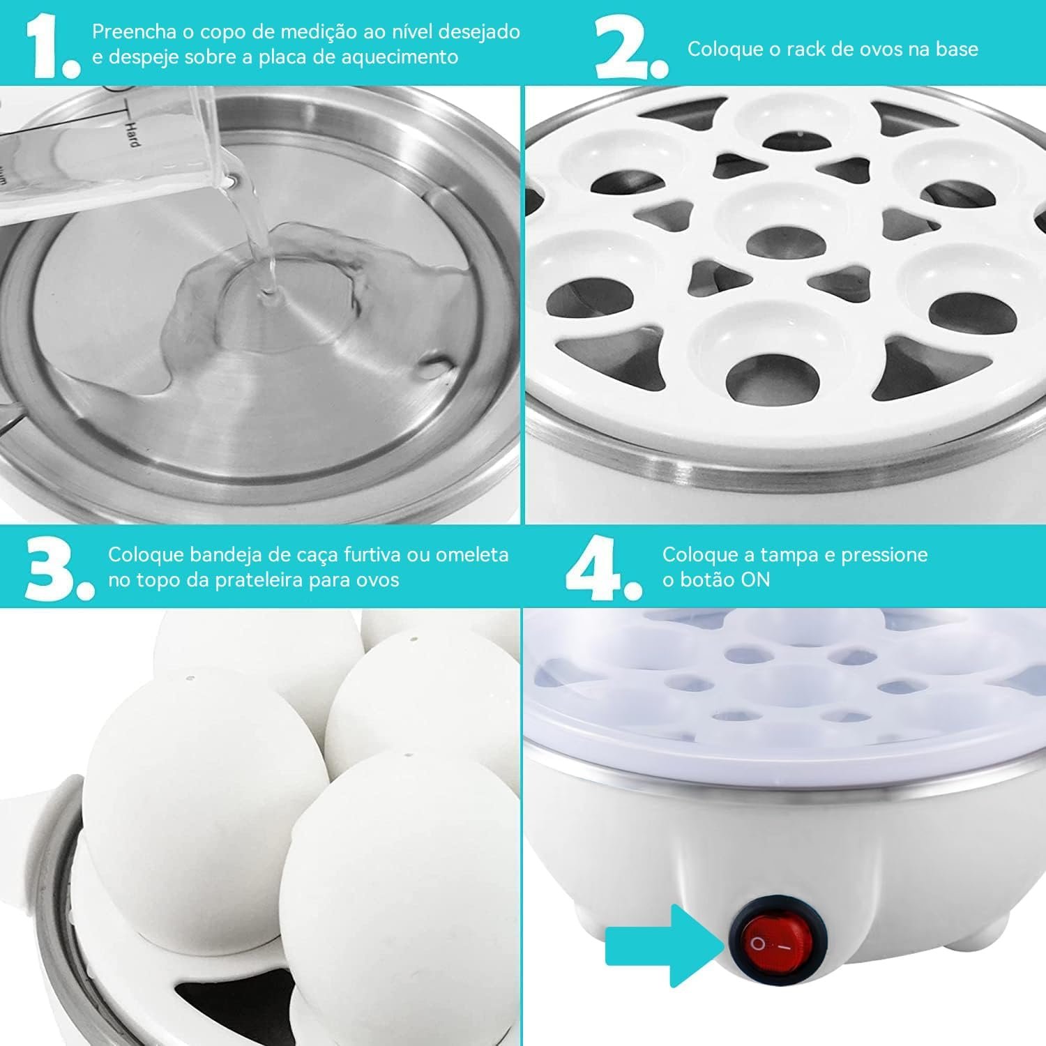 Cozedor de Ovos Eletrico Cozinhar Ovos Eletrico – Rosa, Azul, Amarelo, Branco (Simples/Duplo Camada) (Branco-Simples, 220V)