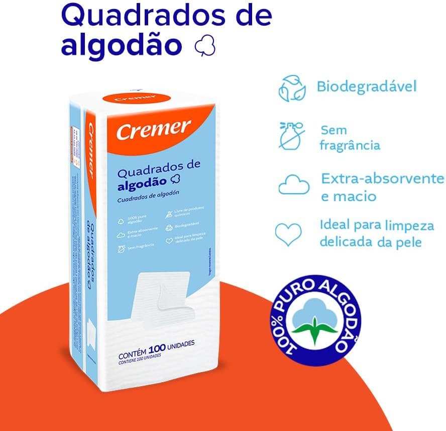 Cremer Algodão Quadrado Sem Perfume Pacote 100 Unidades