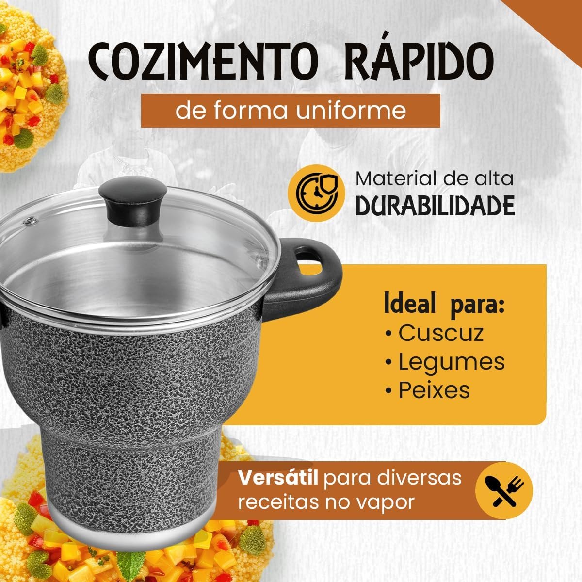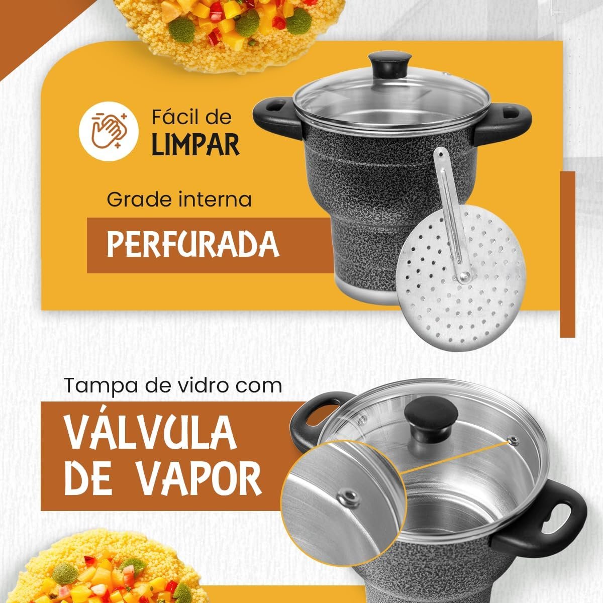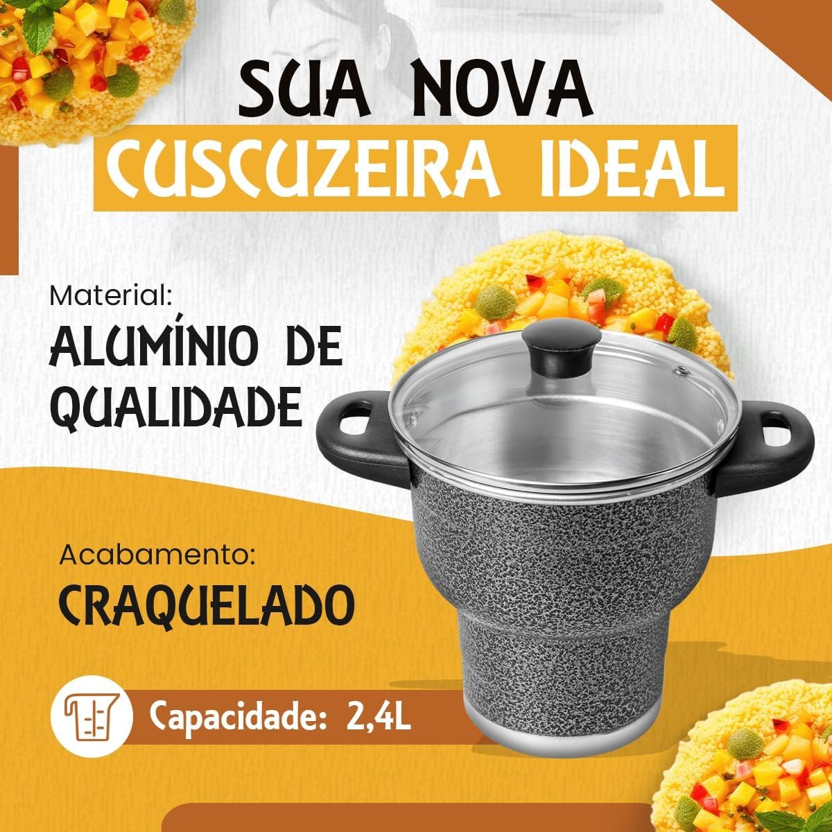 Cuscuzeira 16 Granitta Cuscuzeiro Craquelado Tampa de Vidro Com Válvula de Vapor Inox Resistente Revestimento ExternoCuscuzeira 16 Granitta Cuscuzeiro Craquelado Tampa de Vidro Com Válvula de Vapor Inox Resistente Revestimento Externo