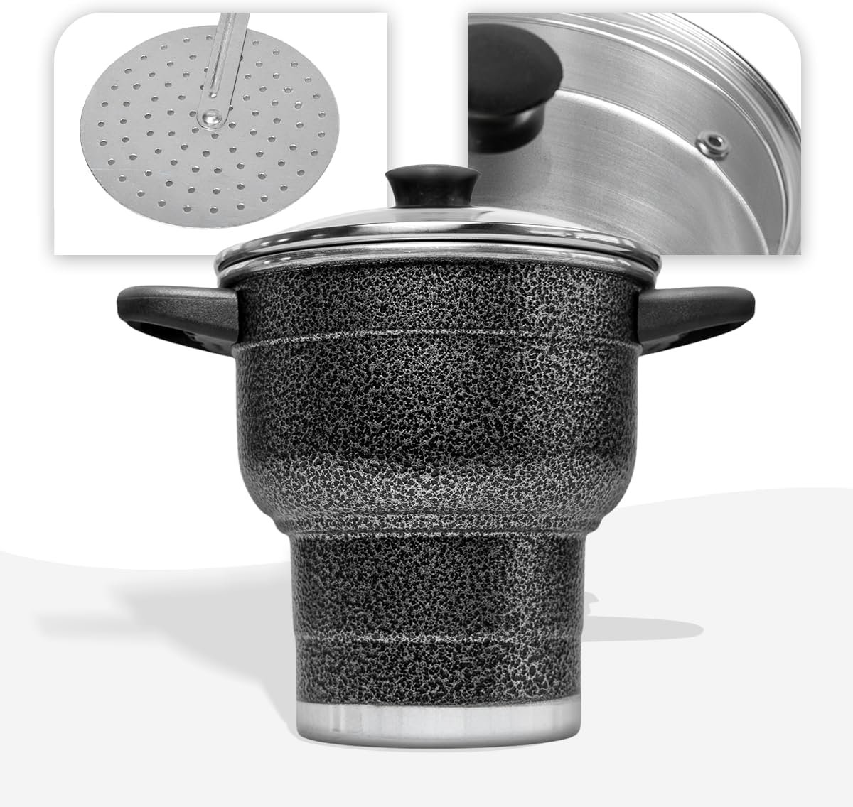 Cuscuzeira 16 Granitta Cuscuzeiro Craquelado com Tampa de Vidro e Válvula de Vapor