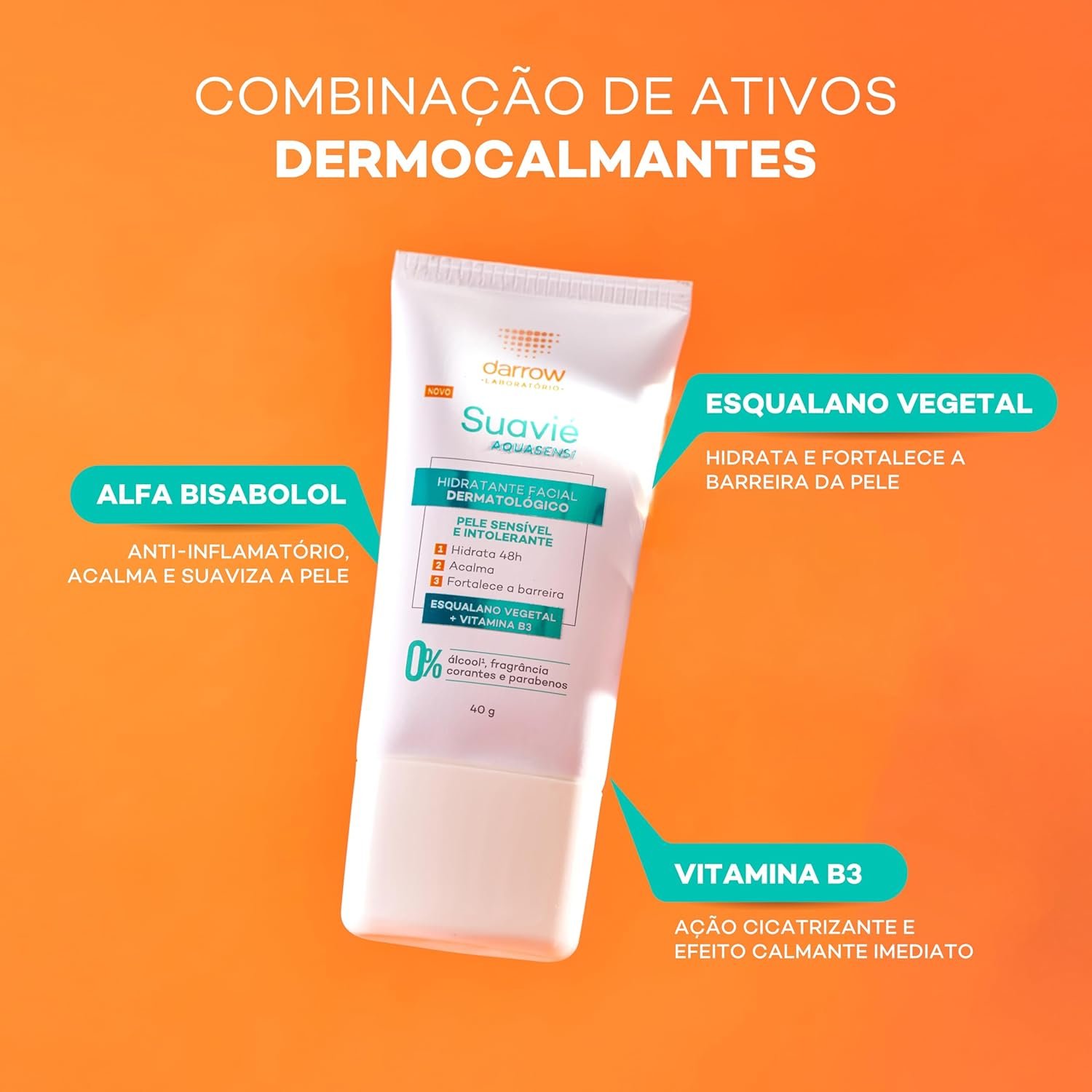 Darrow Suavié Aquasensi Hidratante Dermatológico Facial com Esqualano Vegetal, Vitamina B3 e Alfa Bisabolol que Hidrata 48h, Acalma e Fortalece a Pele Sensível, 40g