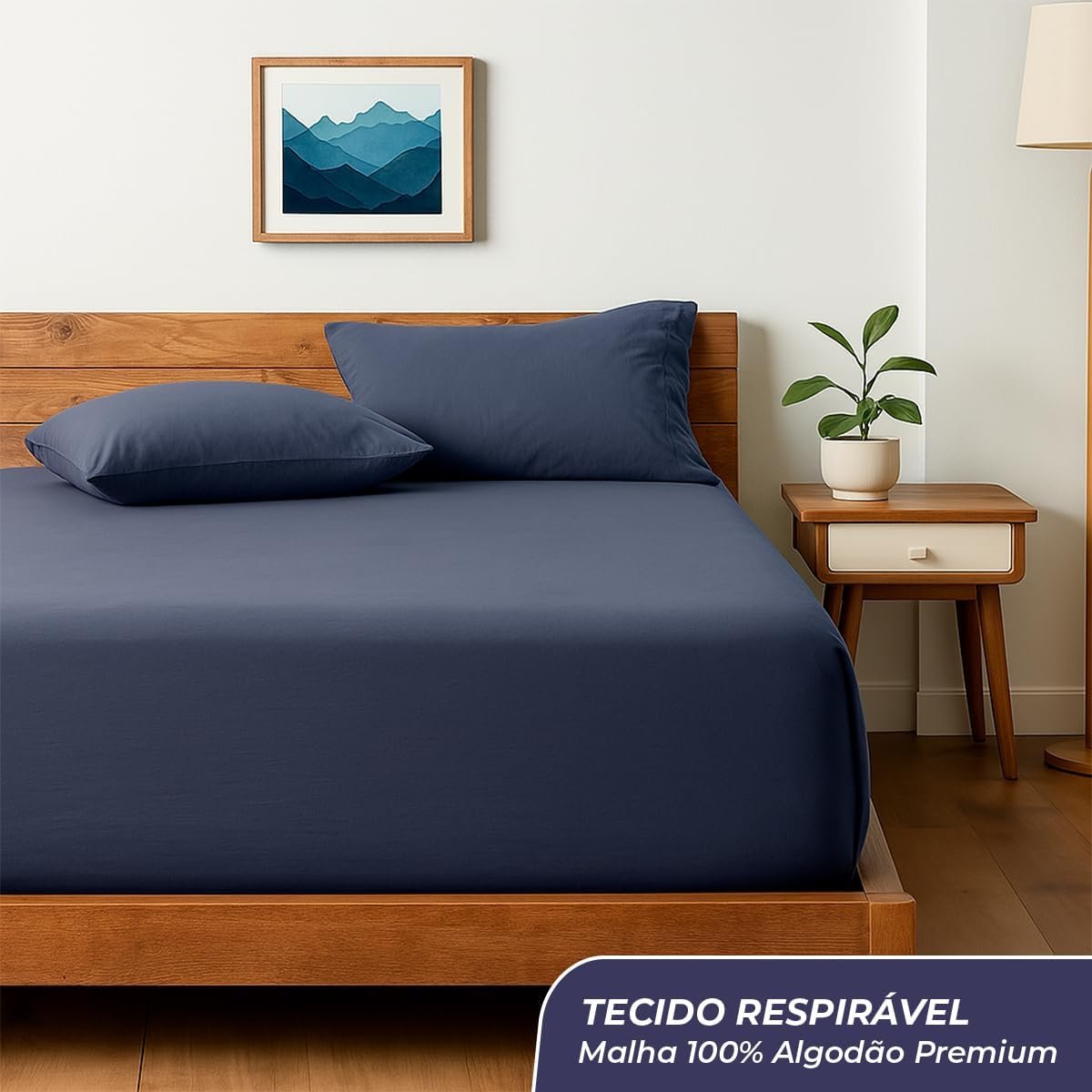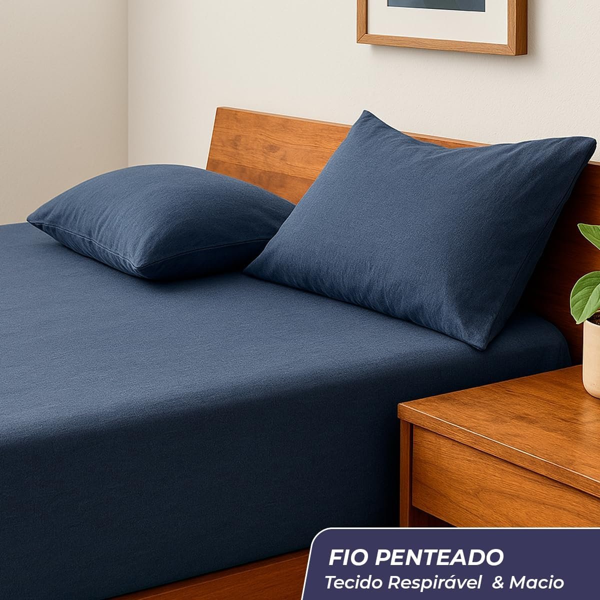 Decolab Jogo de Lençol Malha 100% Algodão Extra Macio – Roupa De Cama Antiácaro, Inclui Lençol Com Elástico (Forro) E Fronhas (Azul-marinho, Casal Simples)Decolab Jogo de Lençol Malha 100% Algodão Extra Macio – Roupa De Cama Antiácaro, Inclui Lençol Com Elástico (Forro) E Fronhas (Azul-marinho, Casal Simples)
