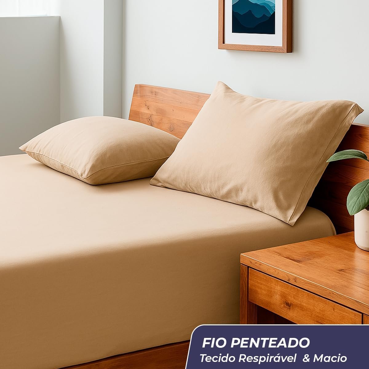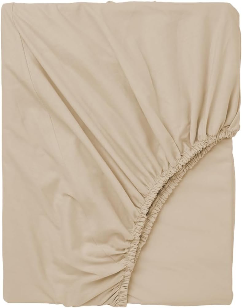 Decolab Jogo de Lençol Malha 100% Algodão Extra Macio – Roupa De Cama Antiácaro, Inclui Lençol Com Elástico (Forro) E Fronhas (Bege, Casal Simples)