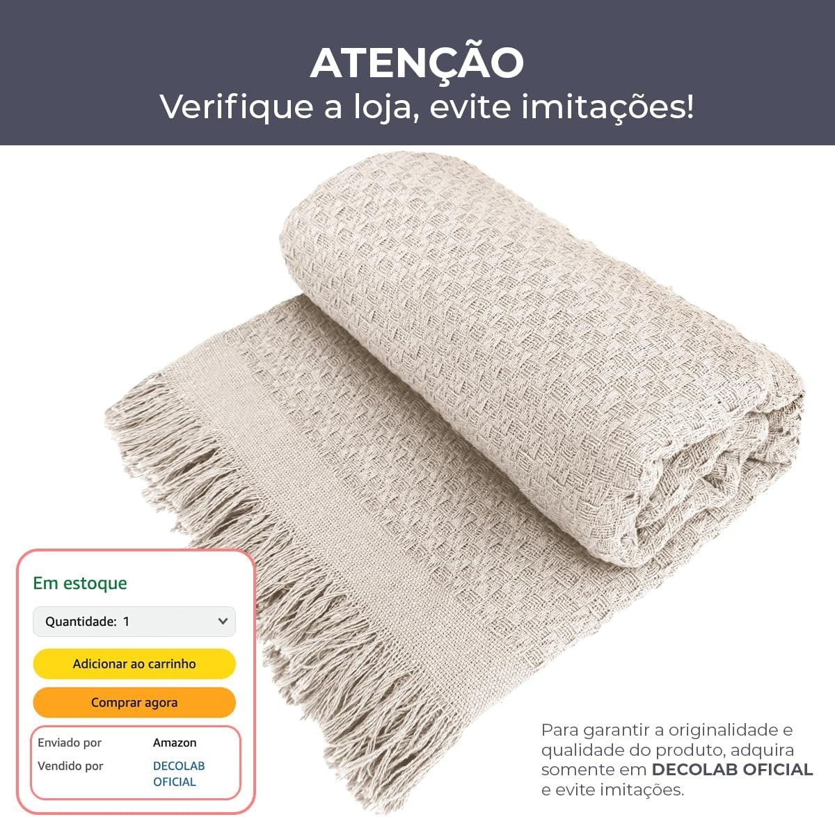 Decolab Manta para Sofá em Algodão com Franjas Artesanais | Cobertor Decorativo para Sofa, Poltrona e Cama | Estilo Boho Chic (Branca-Cru)