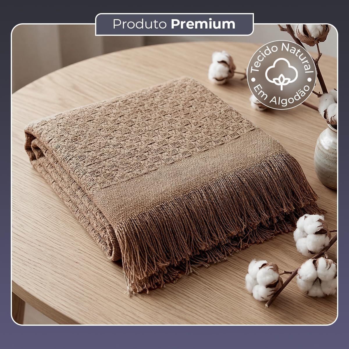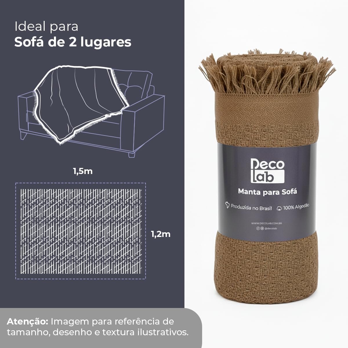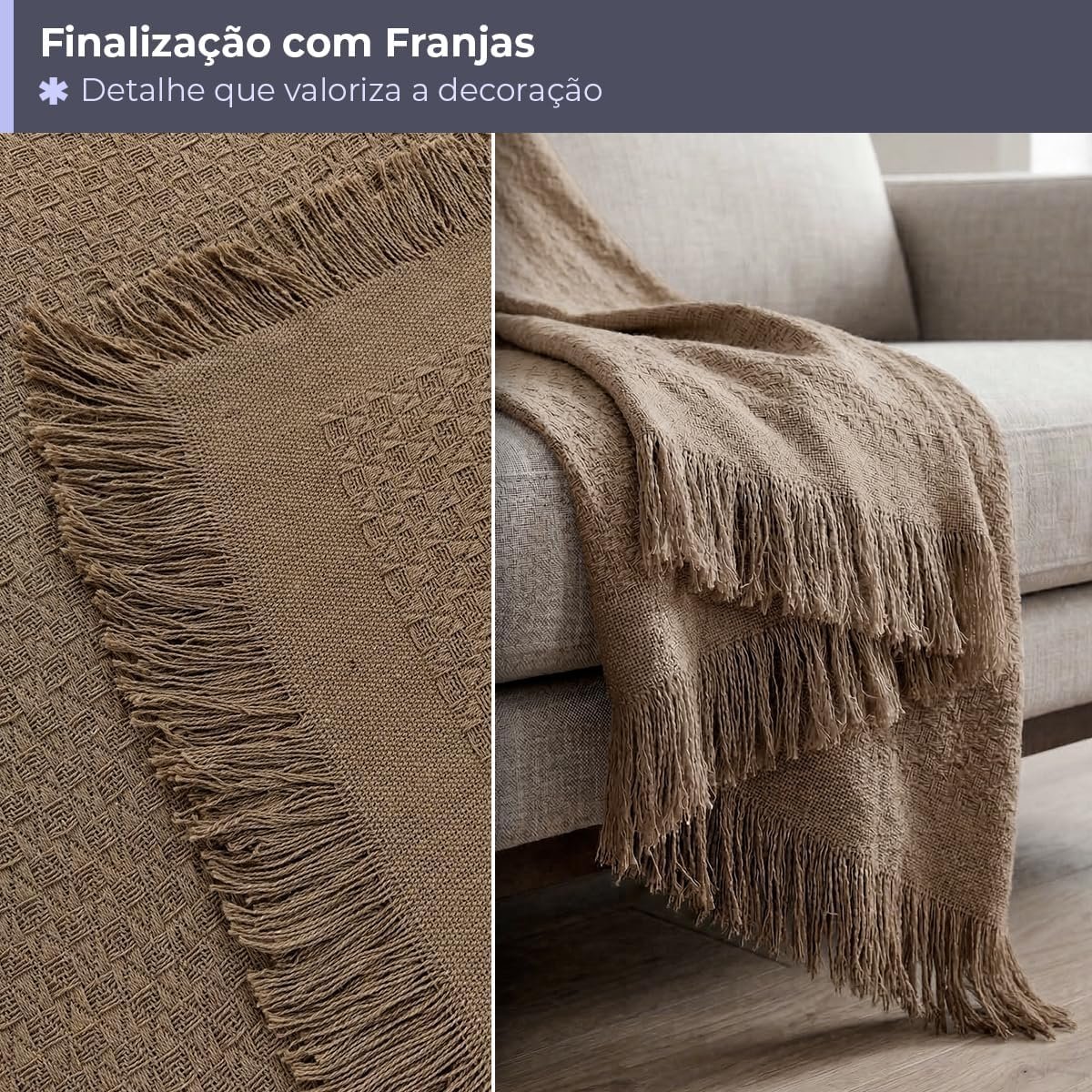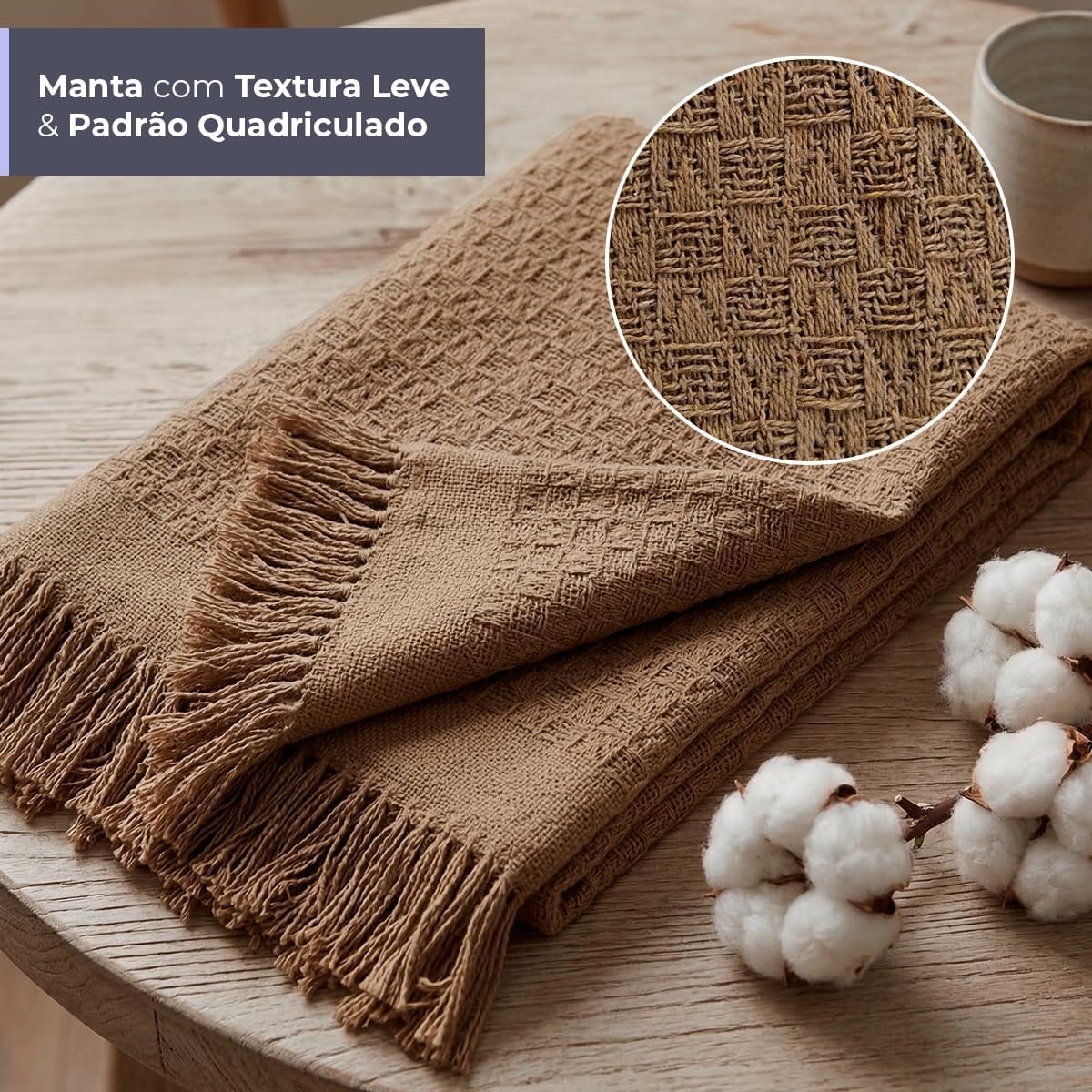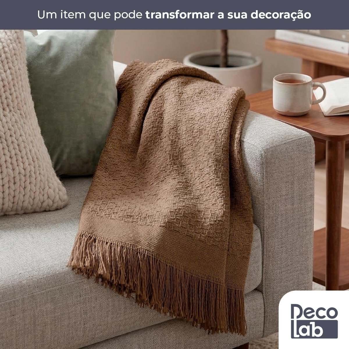 Decolab Manta para Sofá em Algodão com Franjas Artesanais | Cobertor Decorativo para Sofa, Poltrona e Cama | Estilo Boho Chic (Caramelo)