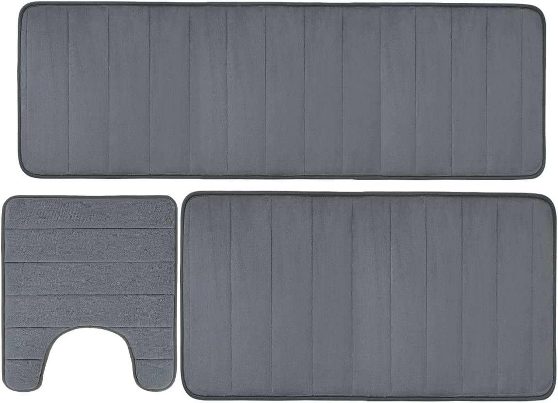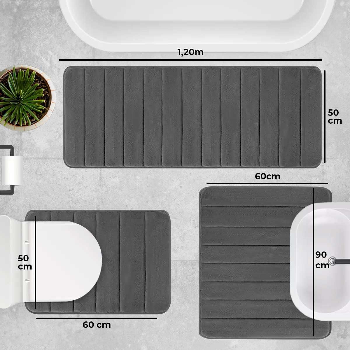 Decolab Tapete Antiderrapante Banheiro Super Soft | Kit Tapete Banheiro Box ou Banheira Completo | Jogo Tapetes Para Banheiro Multiuso Decoração Quarto (Cinza-escuro, 3 Peças)